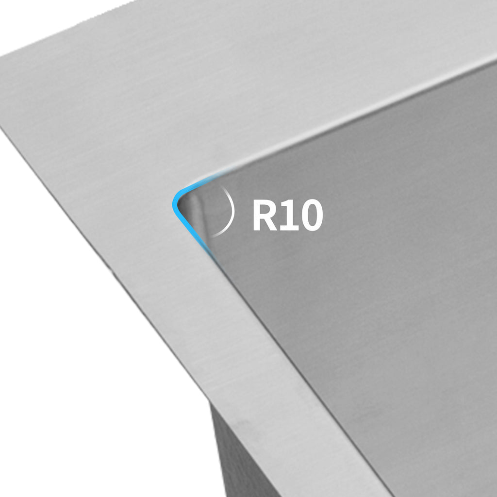 - R10 radius corners design translates to maximum capacity bowl size, making it easier to clean the corners without any debris clogging