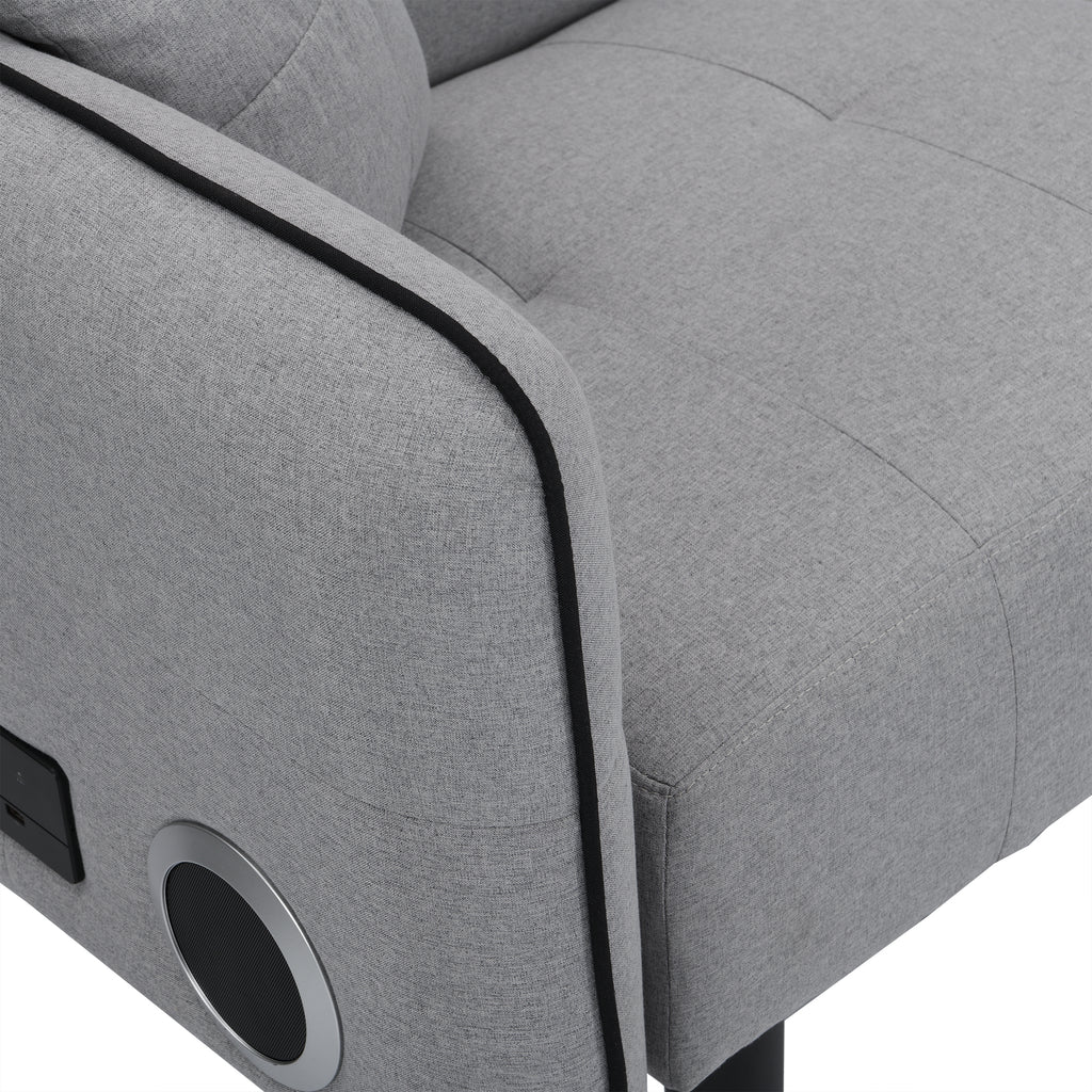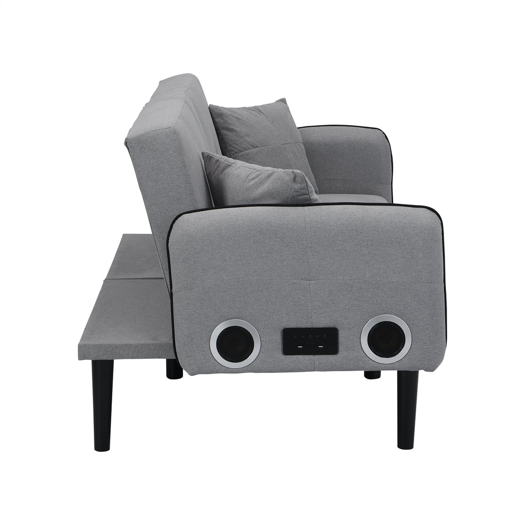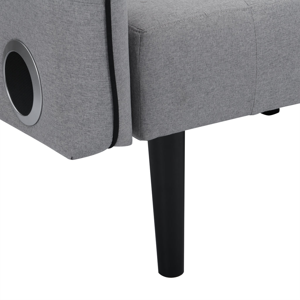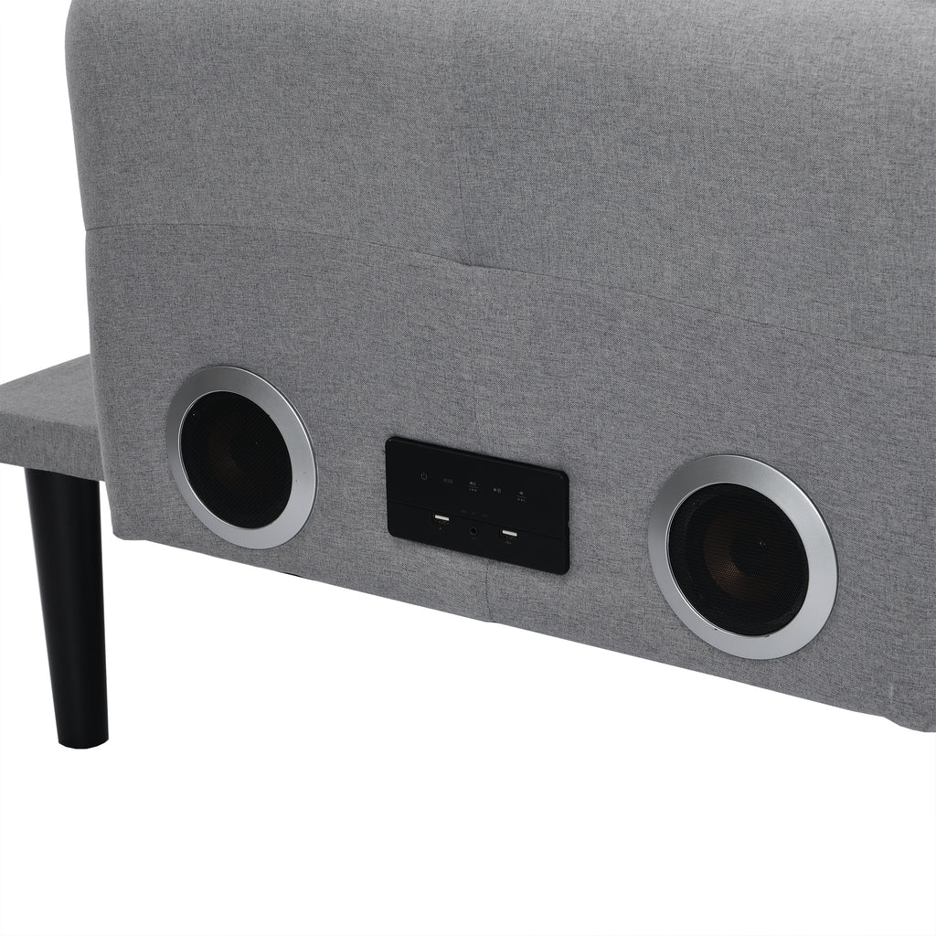 - Sofa bed incorporates wireless audio transmission, 2 speakers subwoofer positioned with bass-heavy sounds intensifying music.