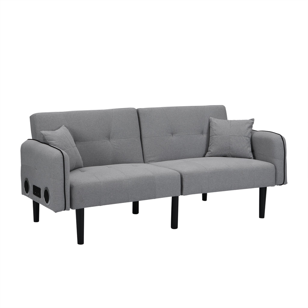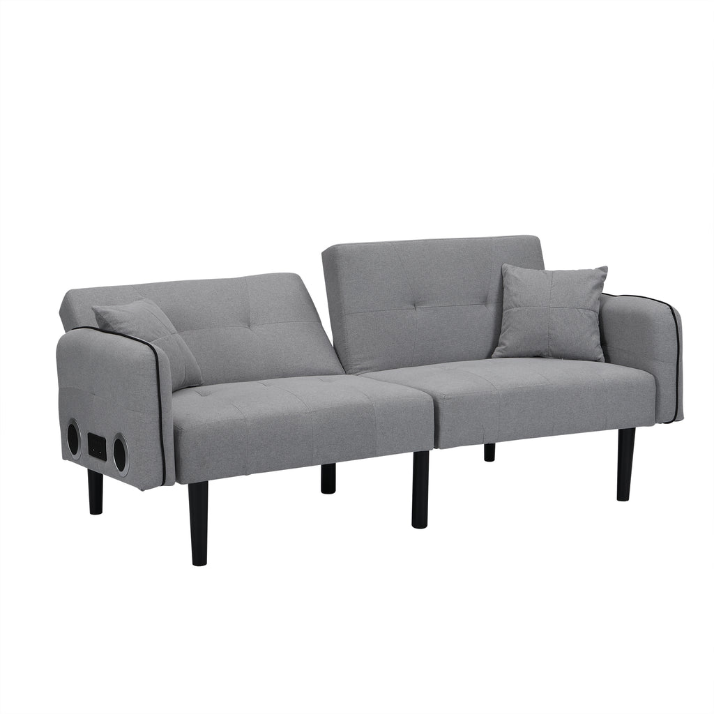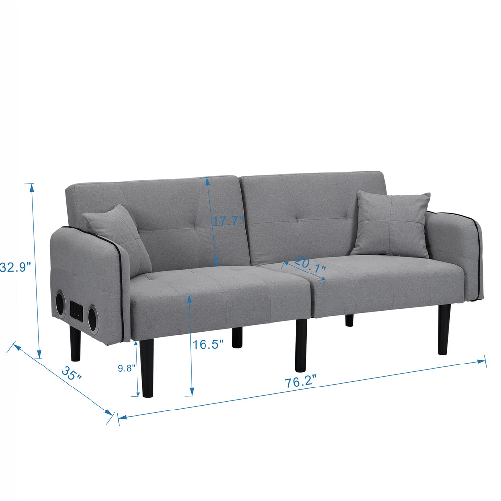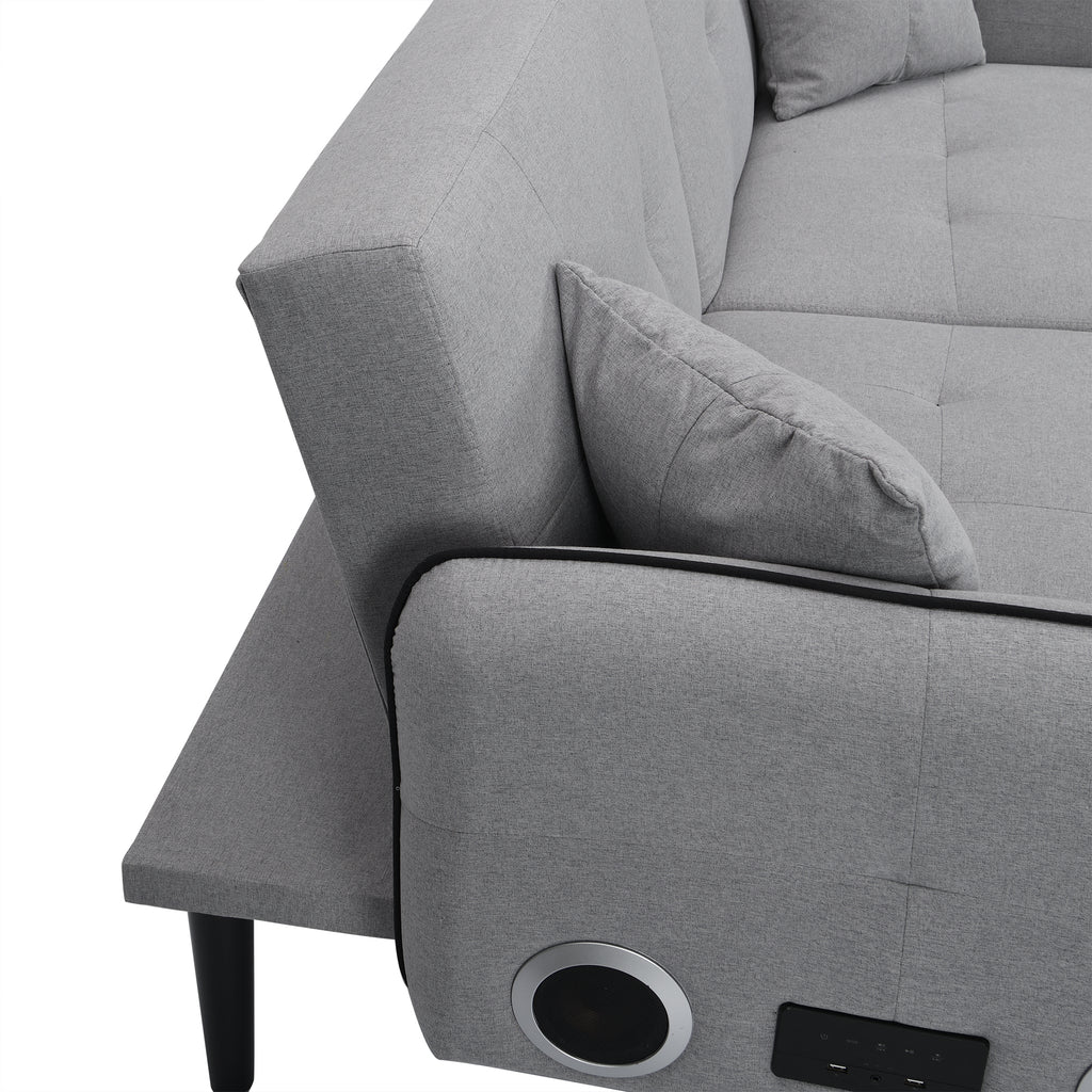 - Sofa bed incorporates wireless audio transmission, 2 speakers subwoofer positioned with bass-heavy sounds intensifying music.