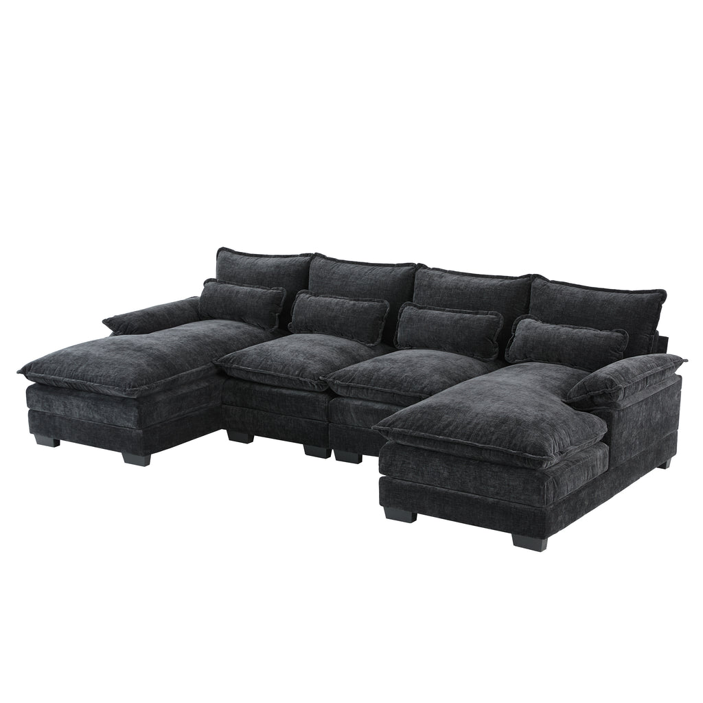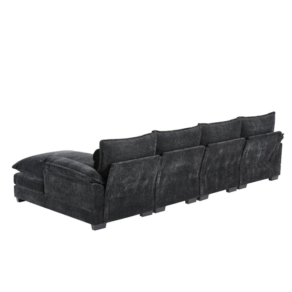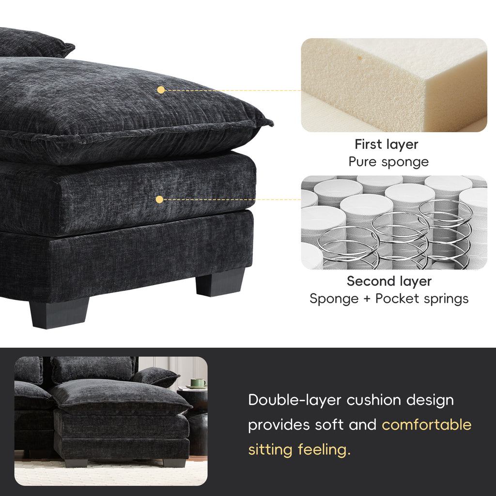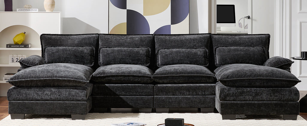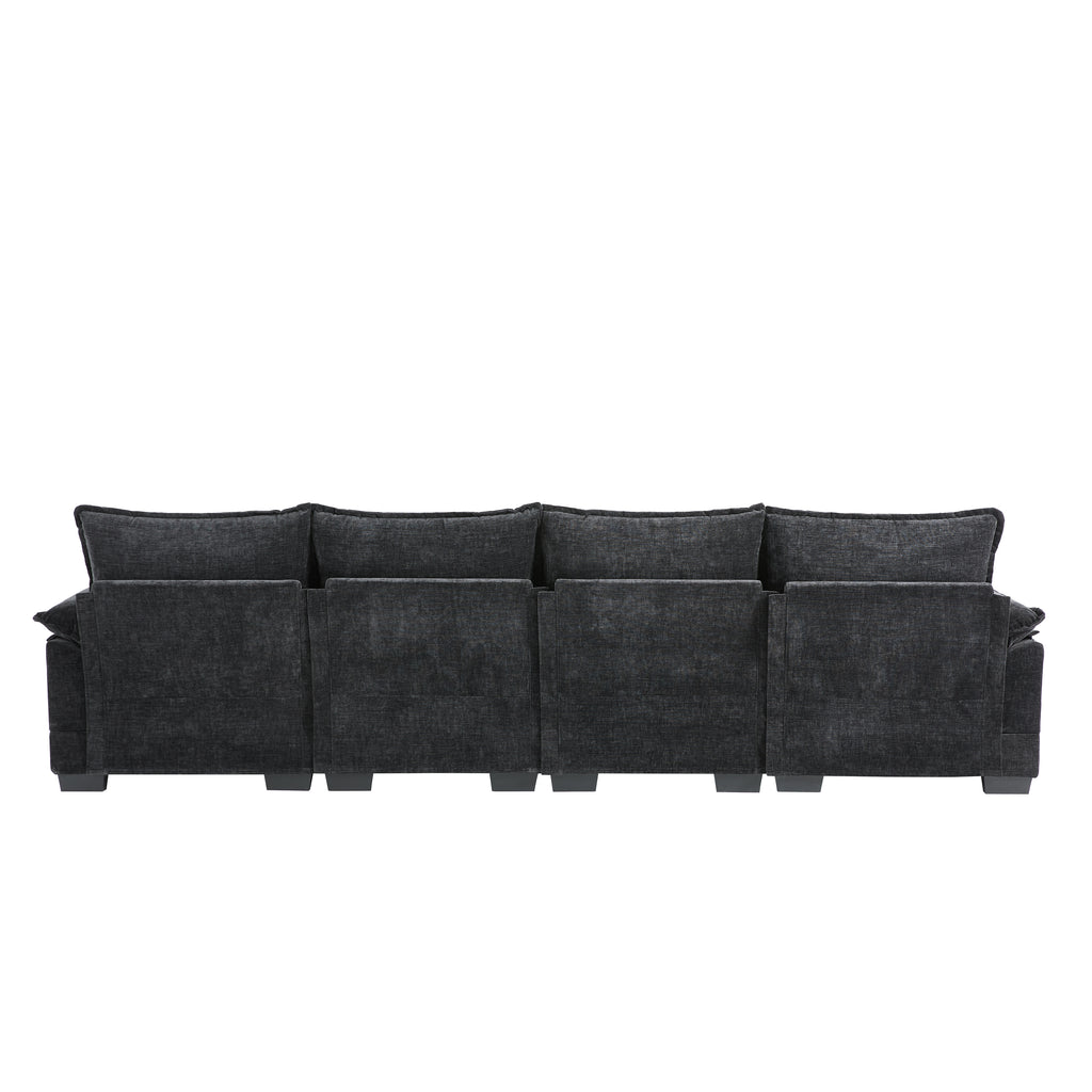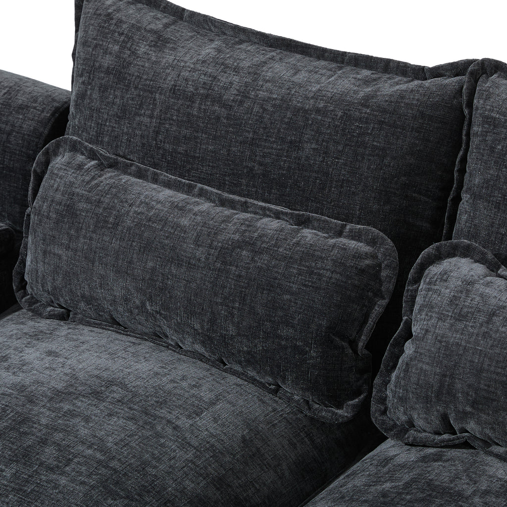 This modern sectional sofa has a classic design that will never go out of style. The upholstery and sleek lines blend perfectly to create a harmonious appearance that can suit any decor style and enhance your space. Our sofa comes with four waist pillows, providing extra support and a touch of decorative charm to your living space.