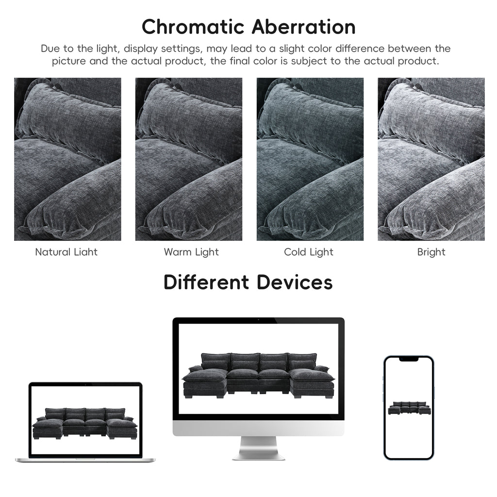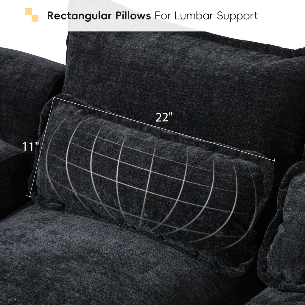 - Comfortable design: The sofa is made of high-quality chenille, which is soft, comfortable and durable.Armrest pillows on both sides of the sofa can relax your head, and there are also 4 lumbar pillows to give better lumbar support, making it easy to adjust your posture and reduce discomfort and fatigue.
