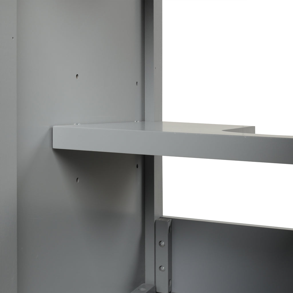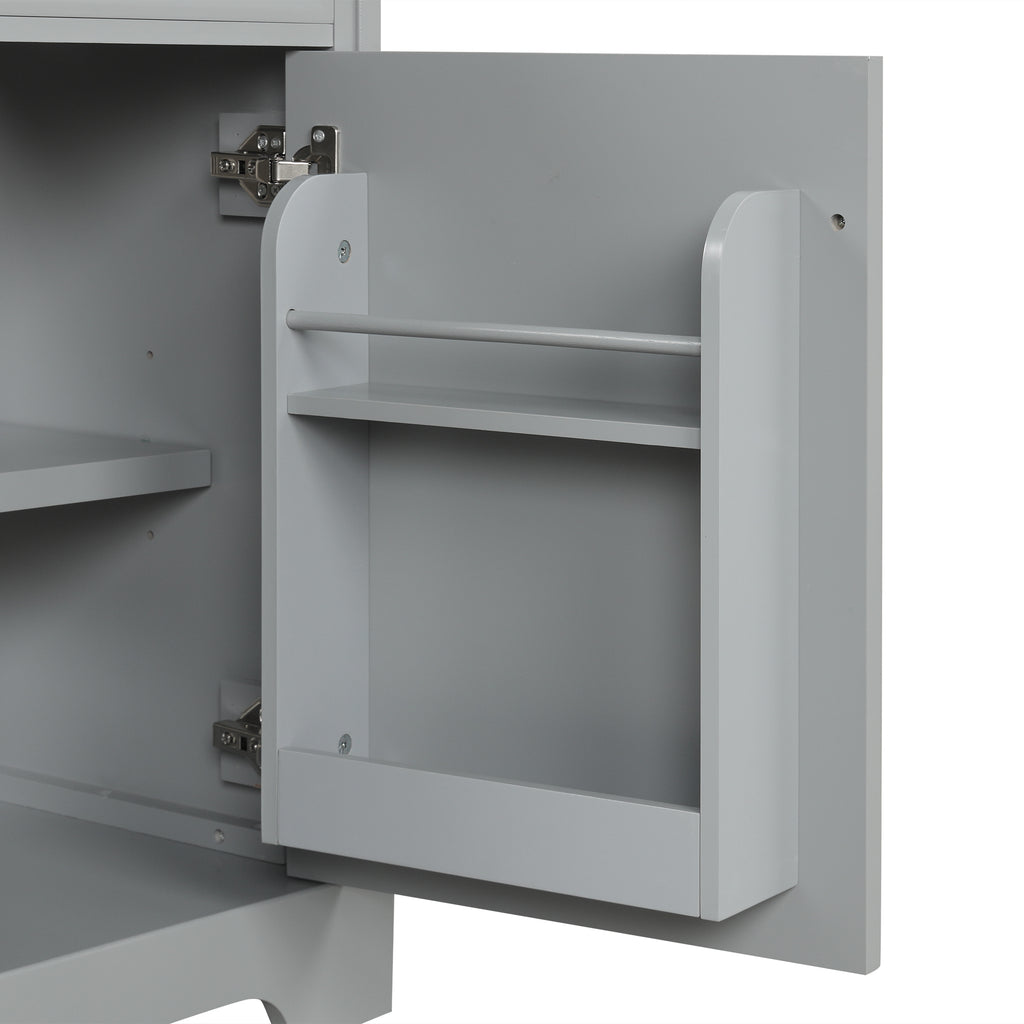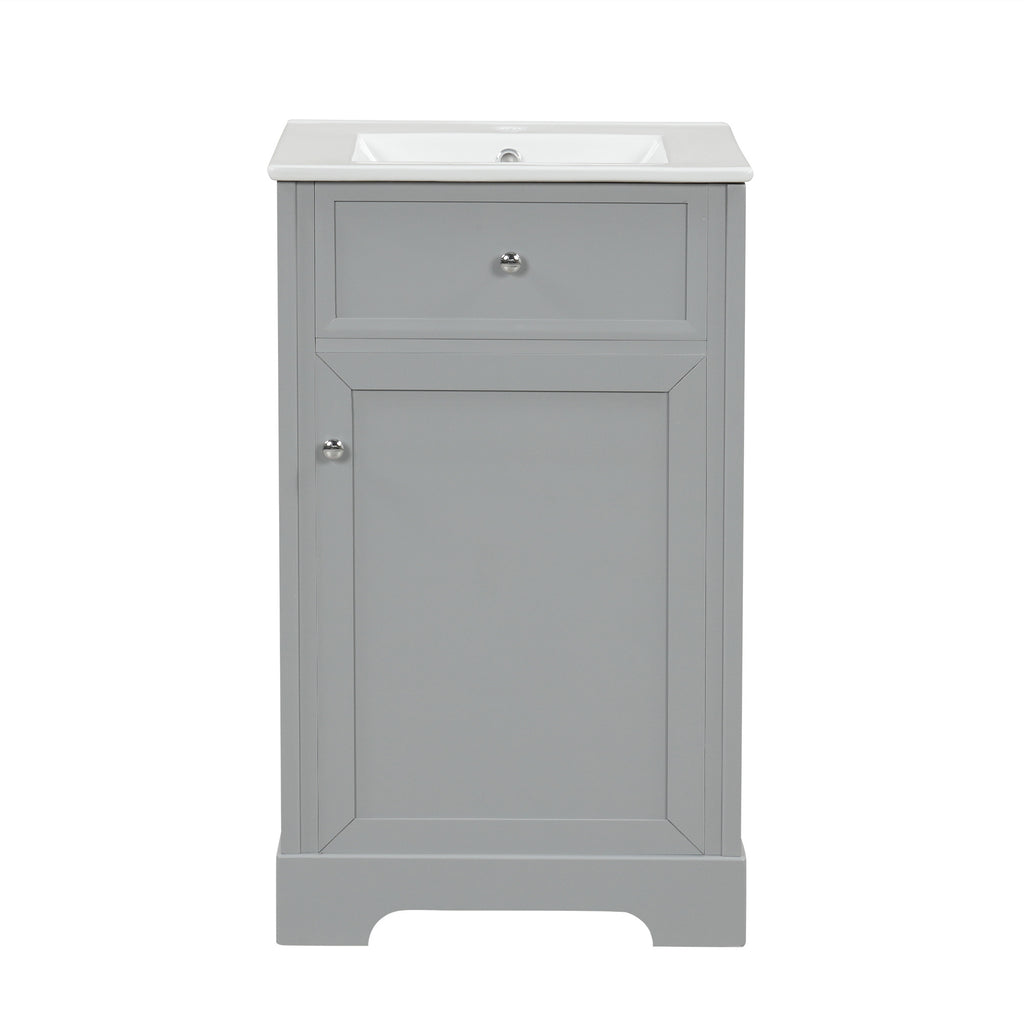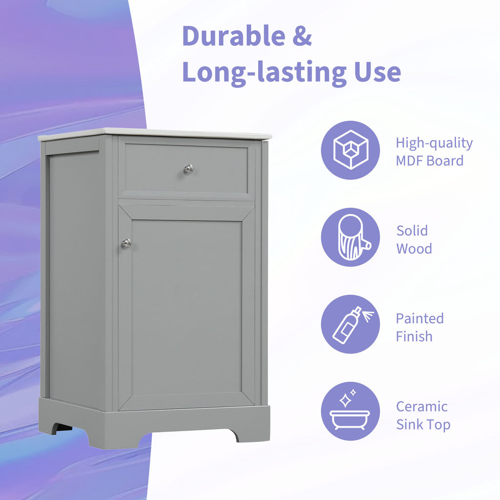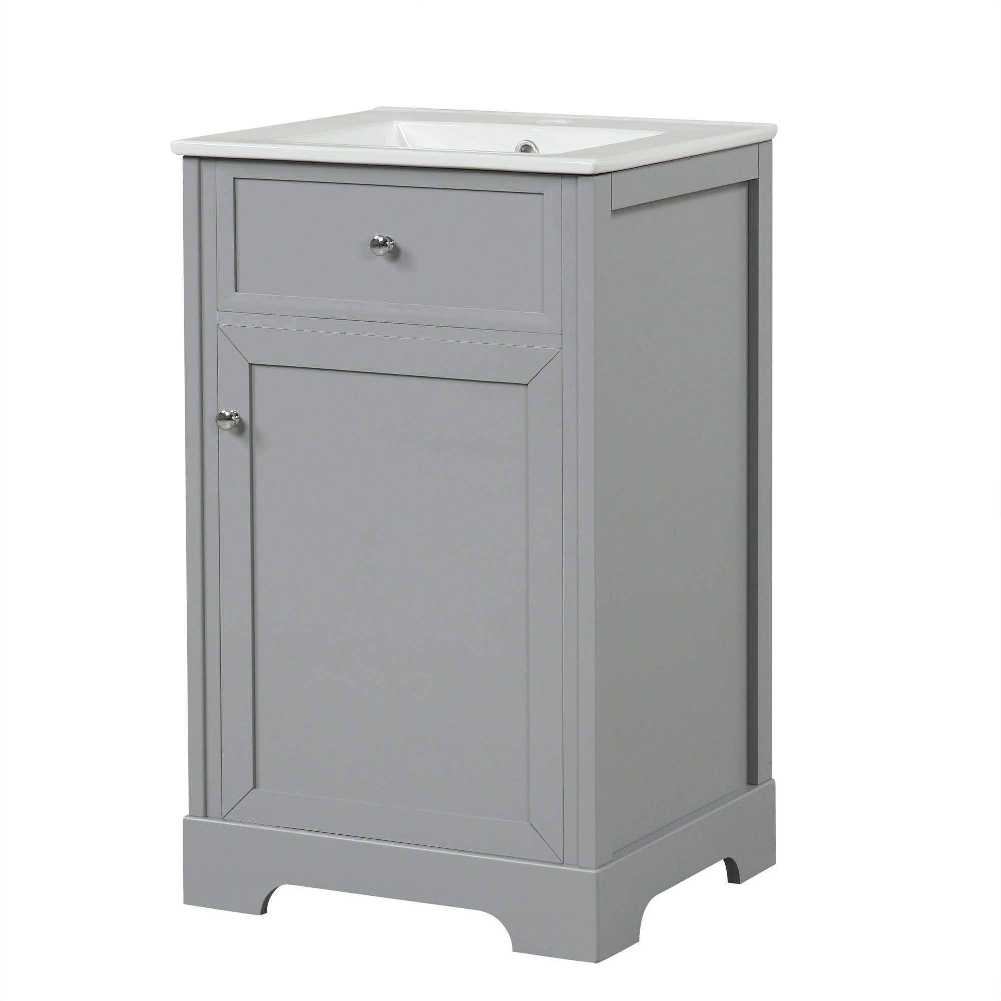 - Vanity with Cabinet & Storage Rack & Shelf - This bathroom vanity has ample storage space: one cabinet with door, two-tier storage rack on the door, and adjustable shelve. You can put soaps, towels, shampoos, tissue paper and other bathroom essentials in it so to keep them away from dust.