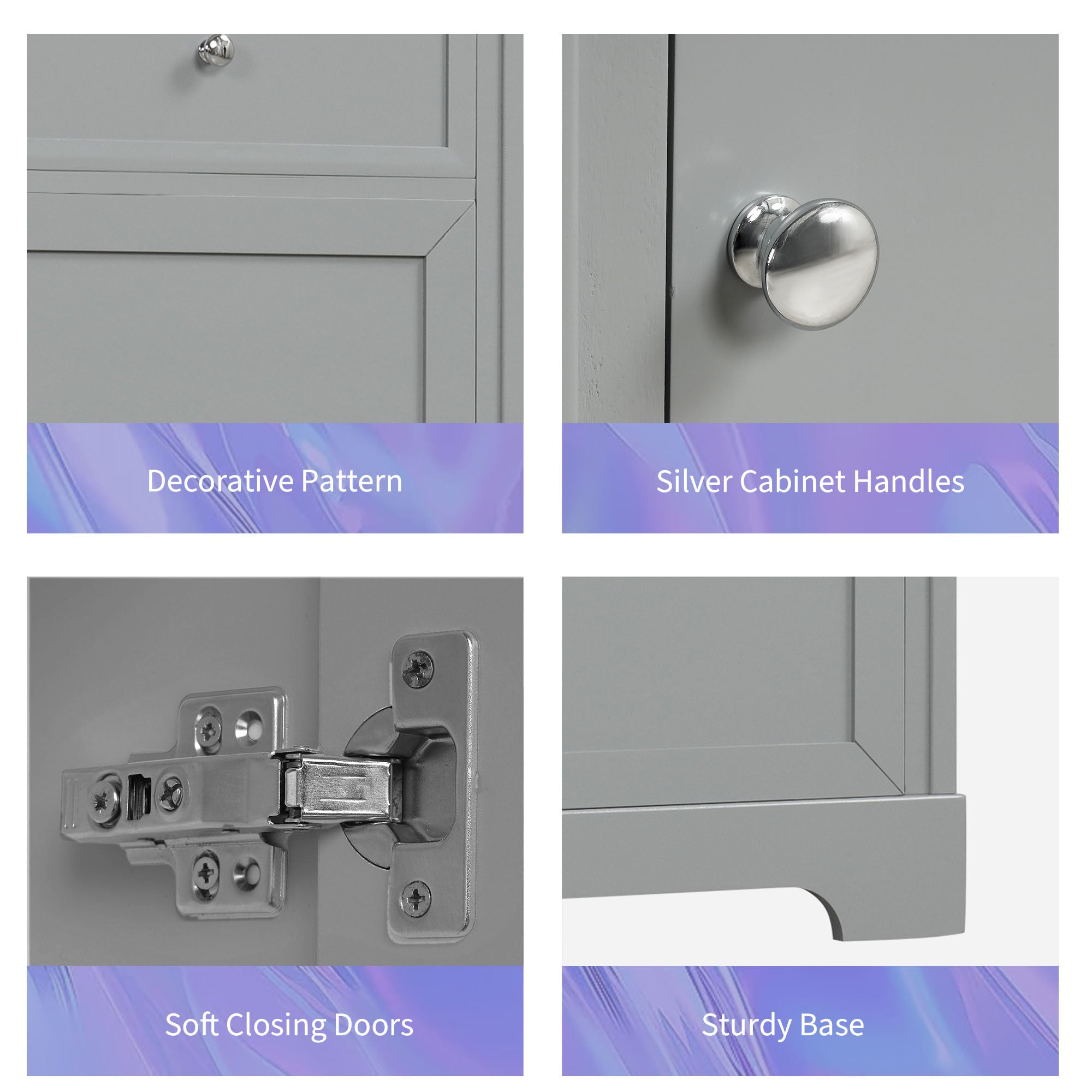 - Thoughtful Details: Considering the humid environment in the bathroom, the door hinges and handle are made of stainless steel, which is not easy to rust. In order to keep silent when open and closing the door, the soft closing door is selected for this cabinet. Round door handle on the door, creating a modern look that is smooth to the touch and pleasant to use.
