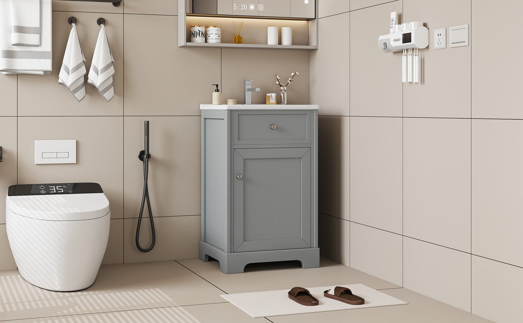 - Assembly Required - This bathroom vanity with sink, needs assembly, is in one package. All the hardware and instruction manual are provided.
