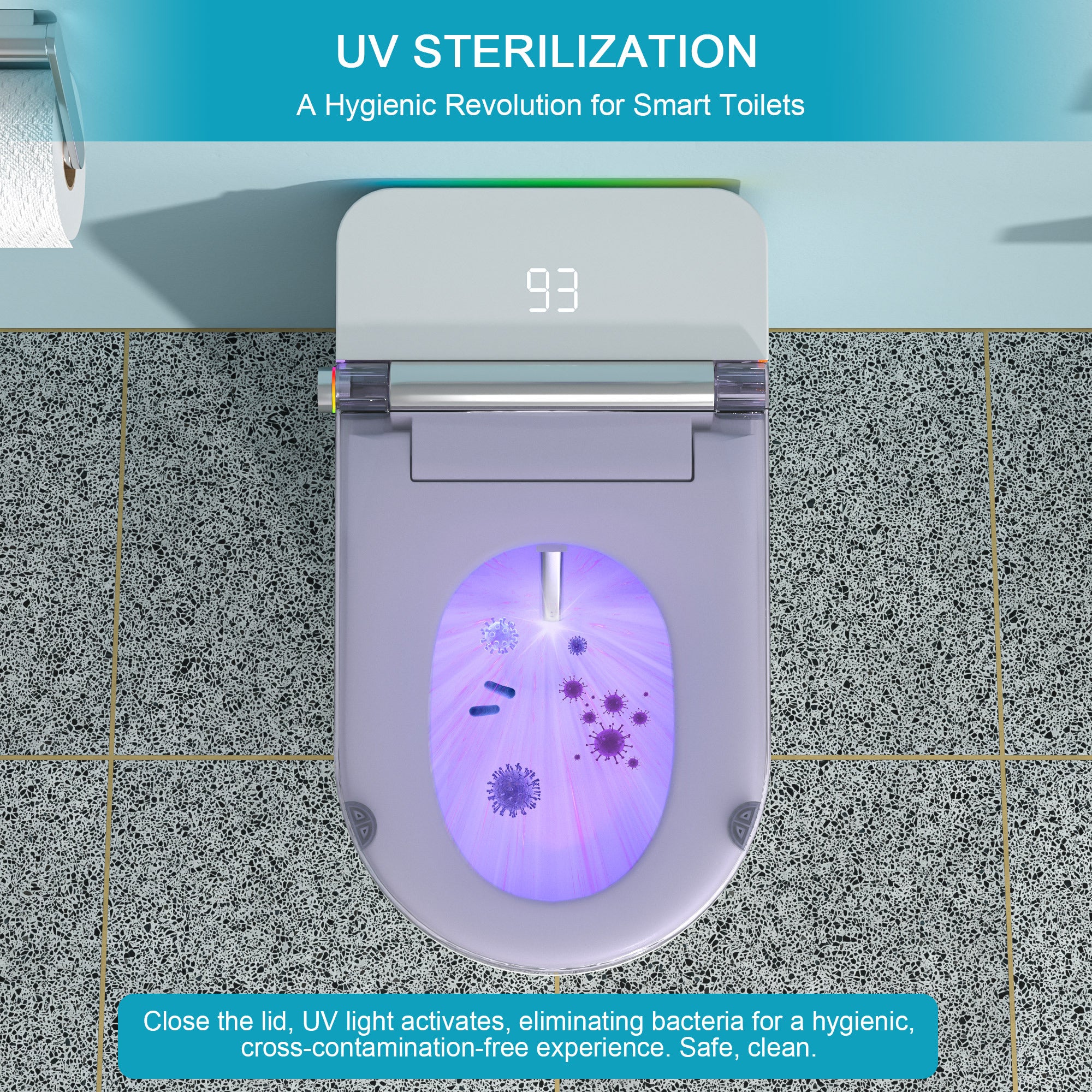- Night Light & LED Display Screen: Smart toilet's soft night light keeps nighttime trips safe, offering gentle visibility for safety and comfort.