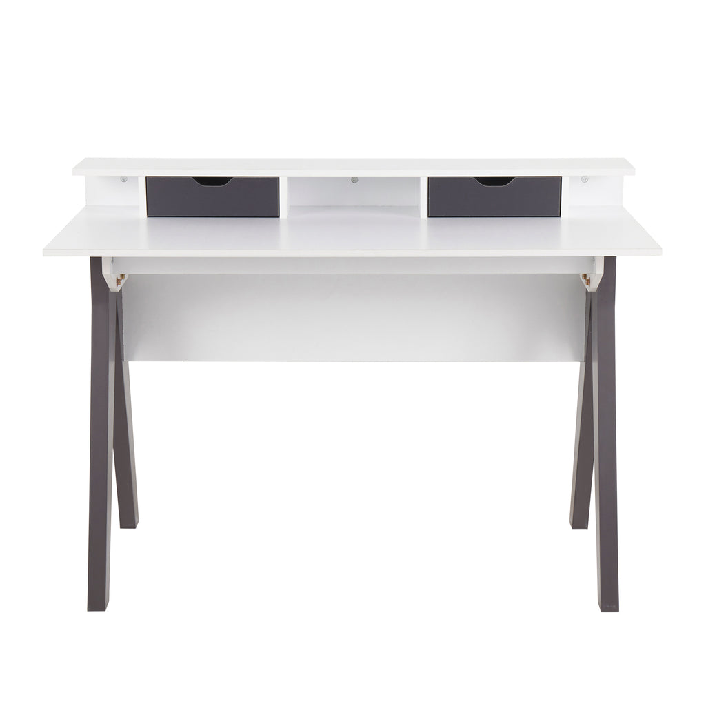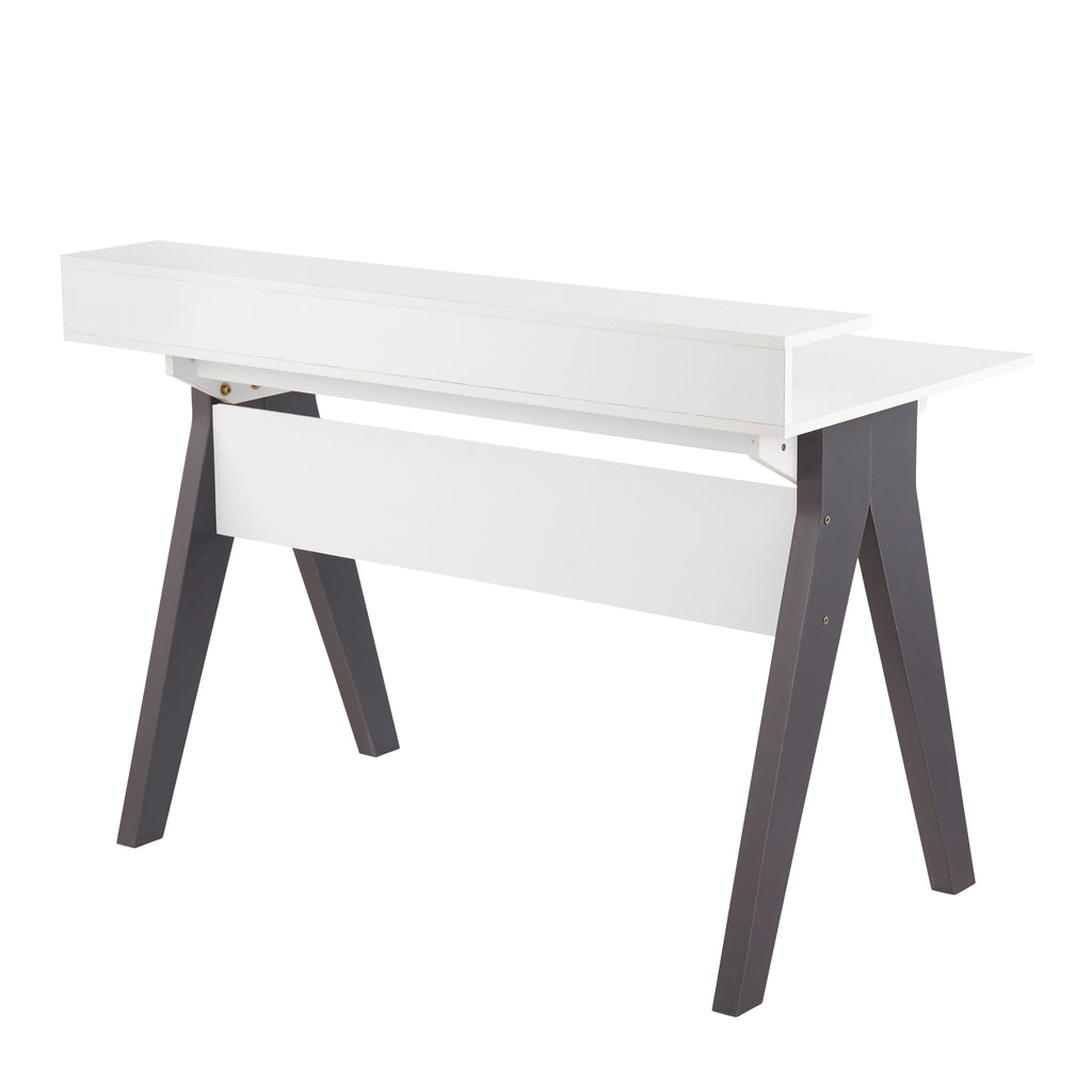 - Add a touch of contemporary style to your home office with the Wishbone Desk by LumiSource. This unique design embodies architectural character and is sure to wow! The Wishbone Desk features a white wood top with grey wood accents, a raised shelf, and two drawers for storage.