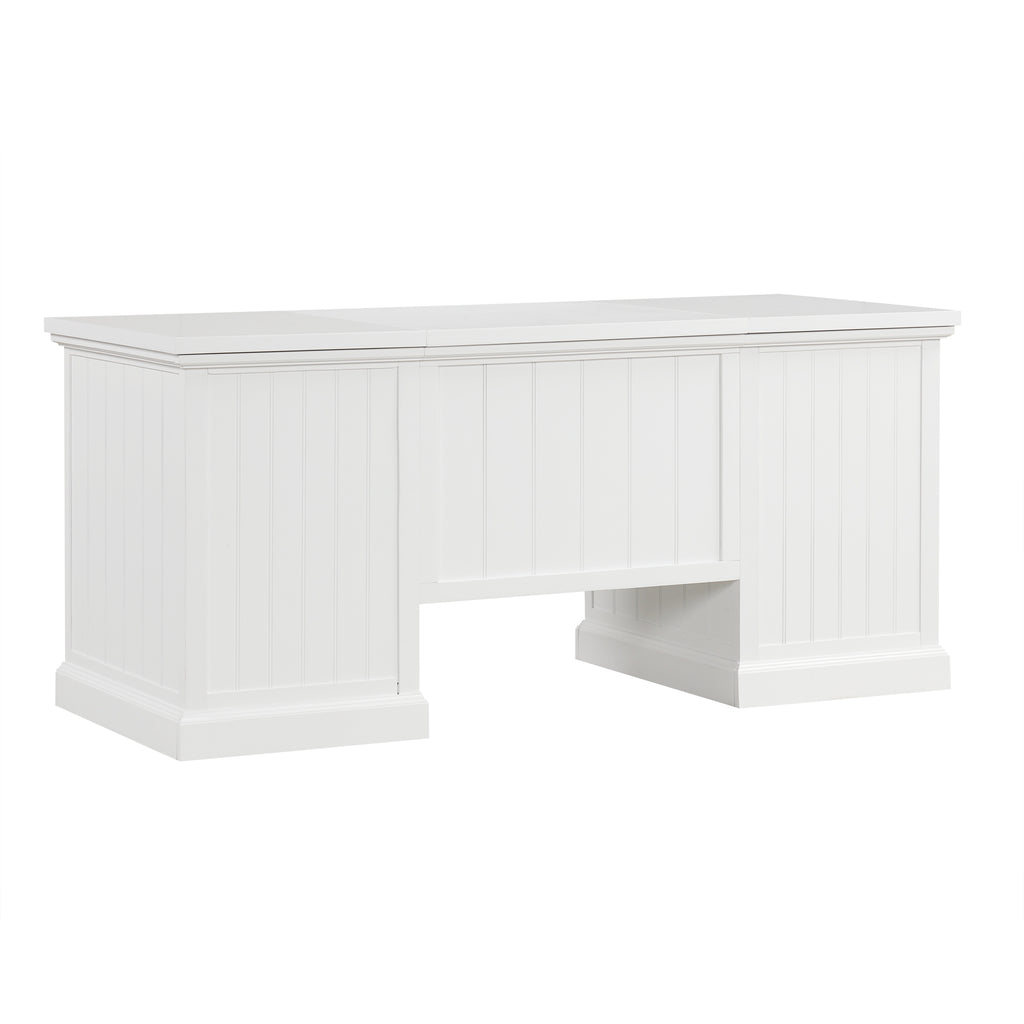 The wide desktop provides ample space for a laptop, monitor, documents, and books, with room for writing, study, or drawing.