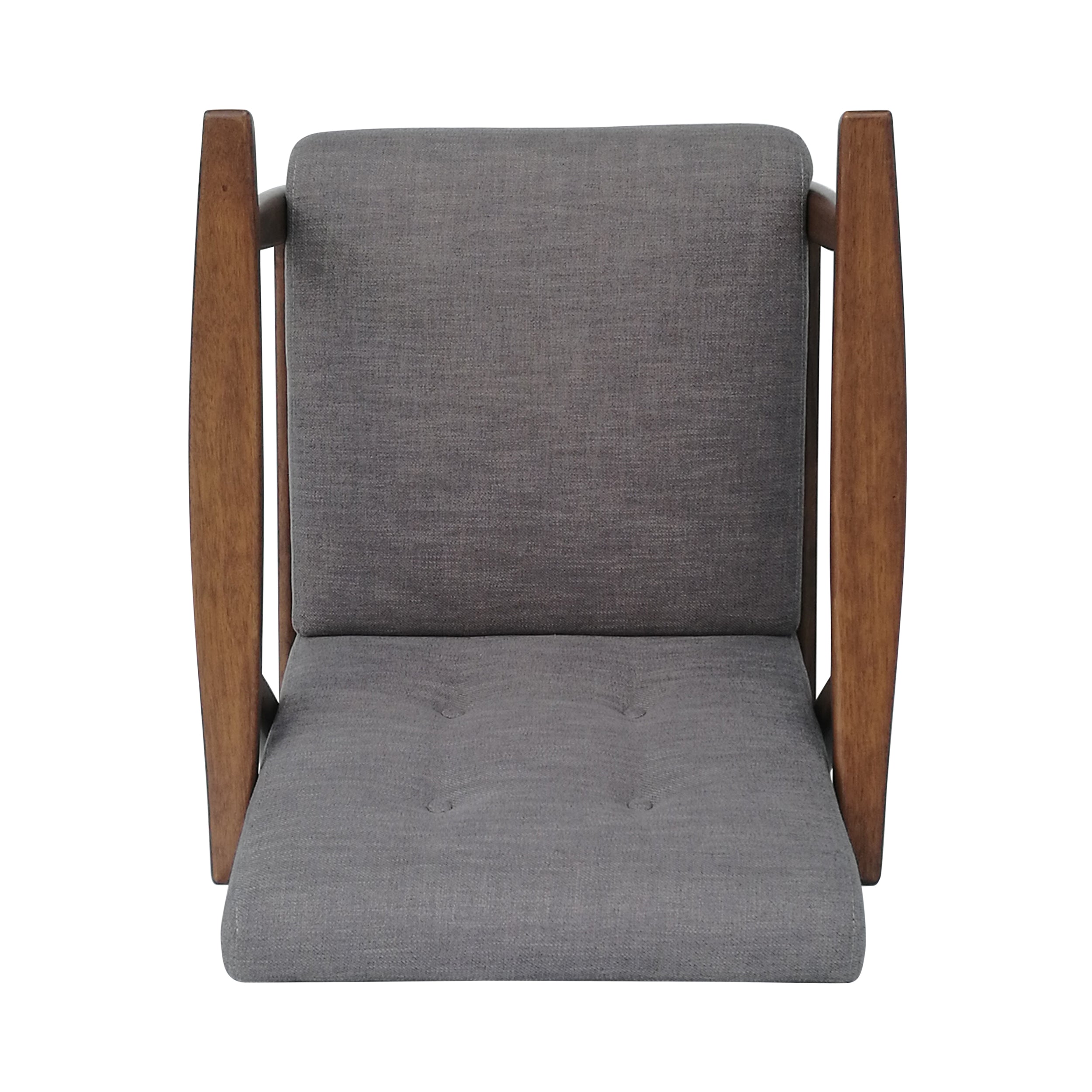 - Experience the vibrant brilliance of mid-century modern convention by taking a seat in this sleek and trendy accent chair; featuring chic button tufting and the iconic look of bent-wood arms so characteristic of this style, this selection will update the look of your living space and give it that oh-so-desirable spirit of retro flair. The timeless look of this era is coming back in a big way - be the first of your friends to include a classic piece like this in your home.