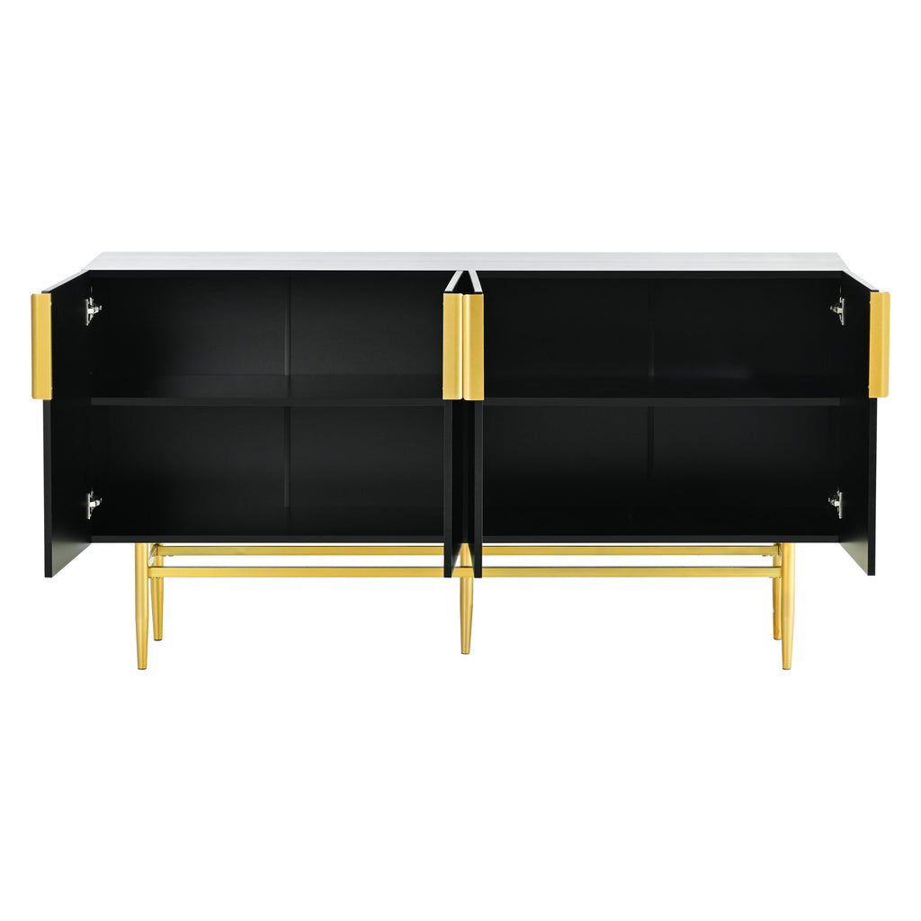 This is a simple and elegant sideboard. There are three colors available for you. The black, white and gray cabinet body with gold handles and legs is harmonious and perfect without losing classic. The sideboard door is designed with wavy stripes, and the uneven geometric lines enhance the three-dimensional effect. Metal door handles and metal legs add texture and luxury to this buffet cabinet.