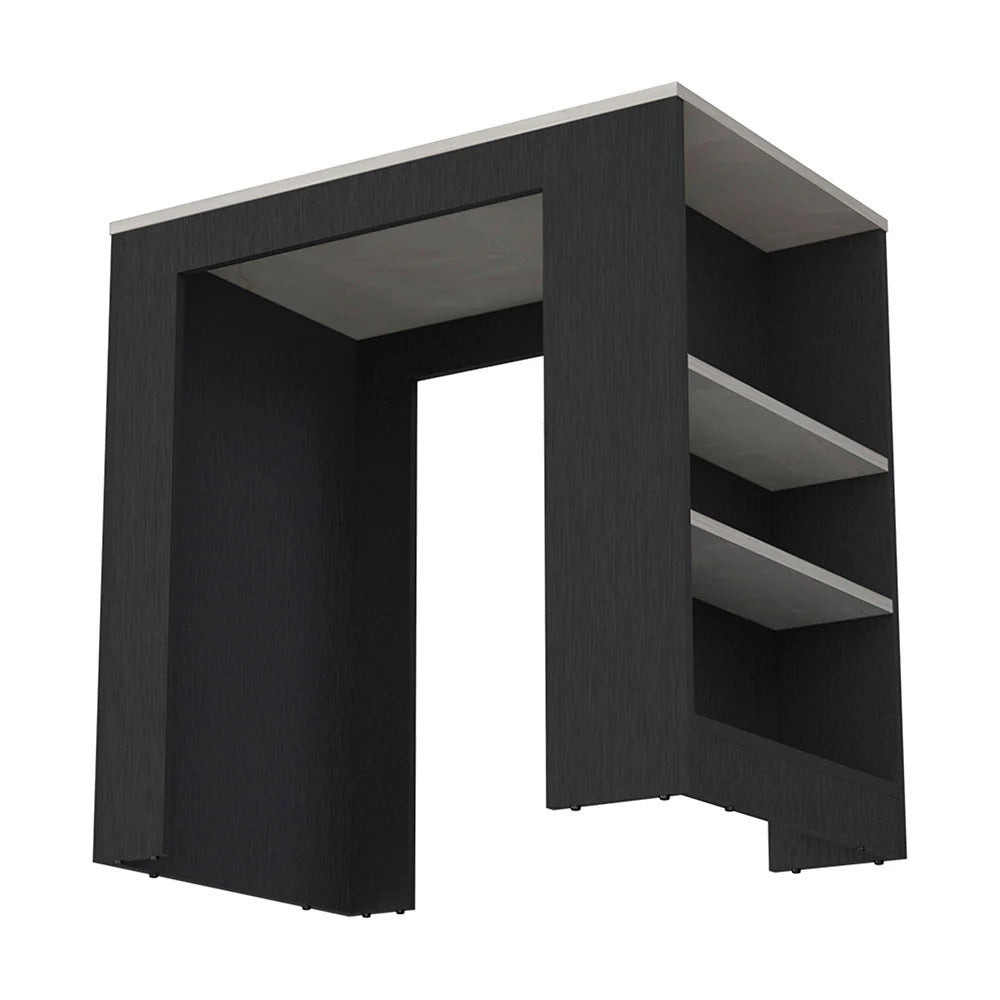 This versatile kitchen island features a counter-height top that is perfect for entertaining guests while you cook, allowing them to sit comfortably and enjoy drinks and appetizers. With an ample surface, it serves as an ideal dining table for meals with family and friends, while three side shelves provide convenient storage for cooking supplies, spices, and other essentials, making meal prep a breeze and offering multiple uses as a workspace or storage solution.
