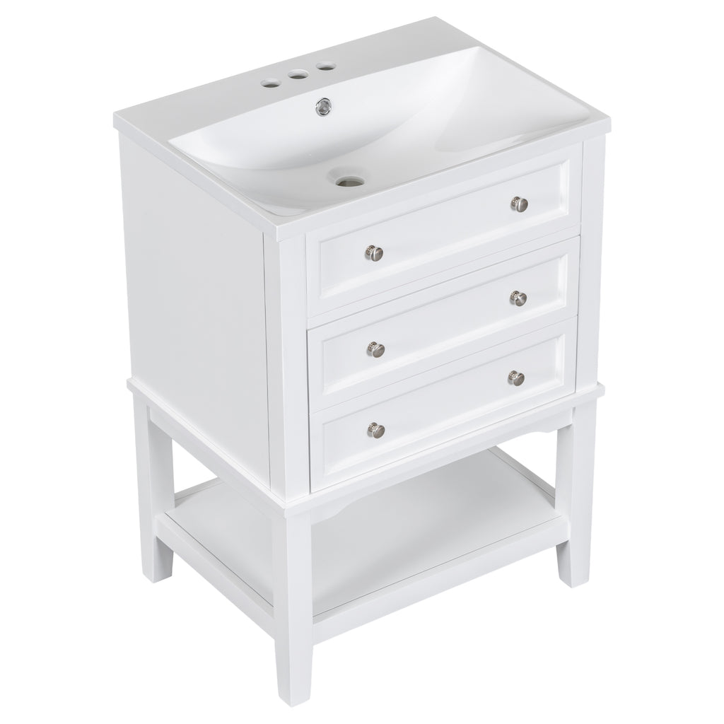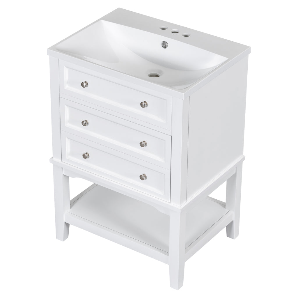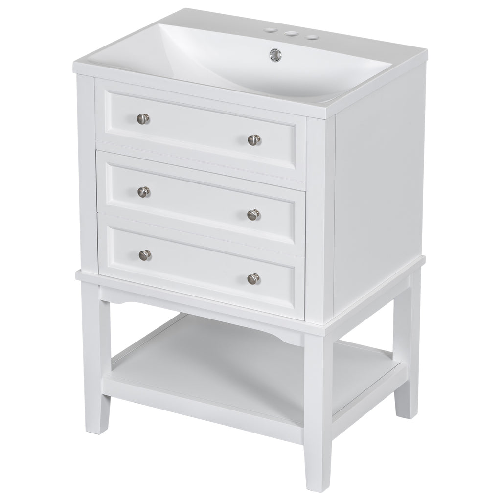- 24' Bathroom Vanity: This 24' white bathroom vanity is suitable for bathroom in any decoration style. Freestanding white vanity cabinet with silver knobs complies with your bathroom facilities. The groove design on the drawer increases the artistry and aesthetics of the home environment. If you're looking for a simple but stylish bathroom sink vanity, our product will be a great choice to upgrade your bathroom.