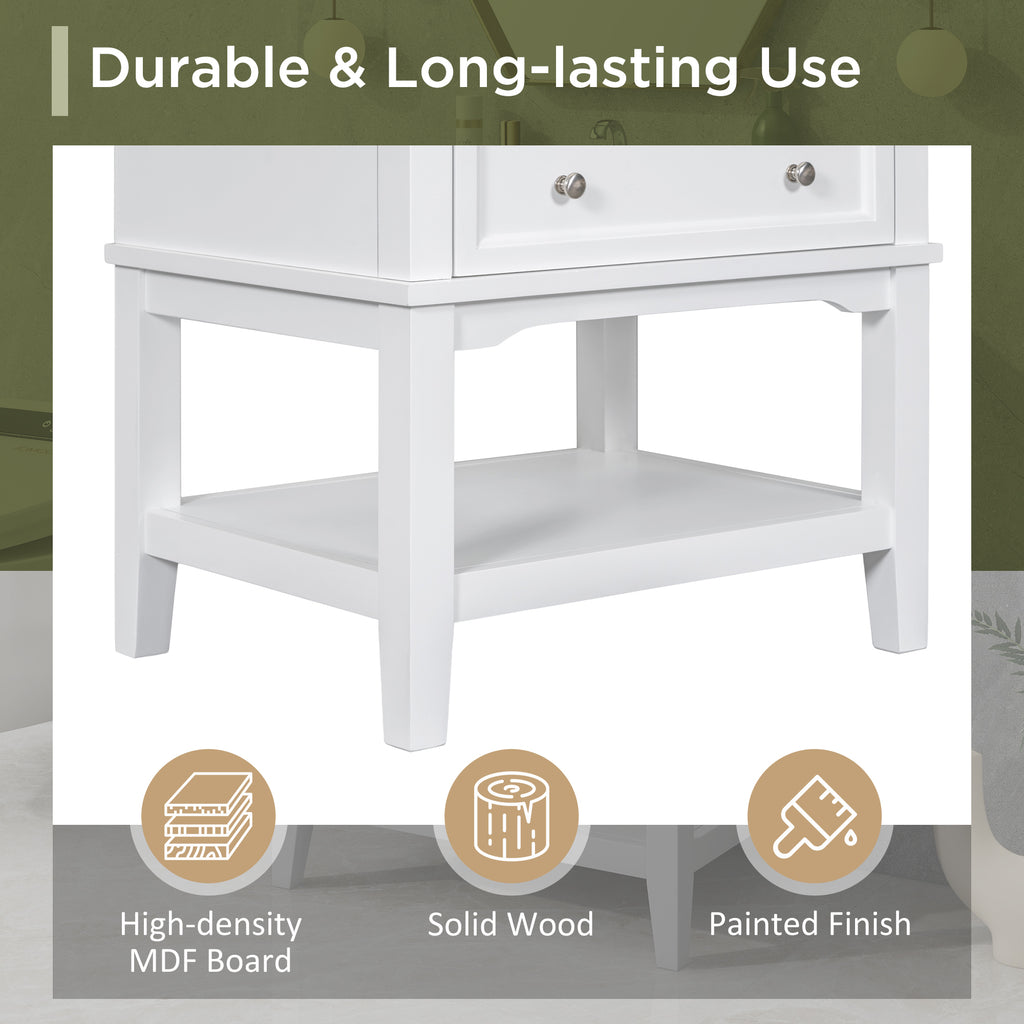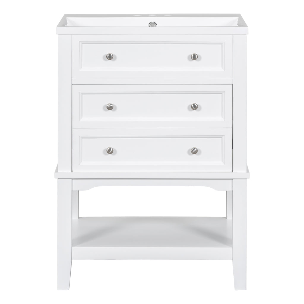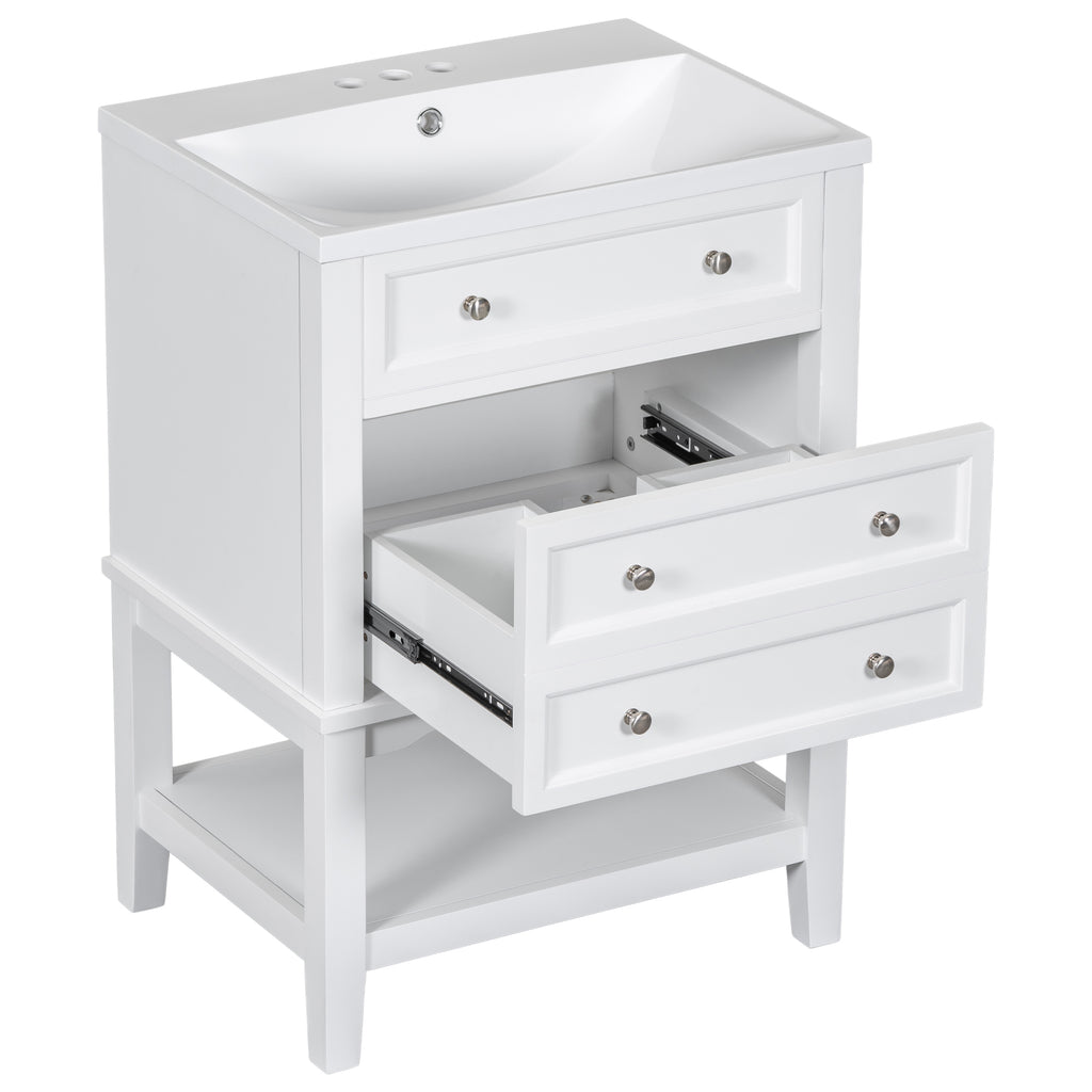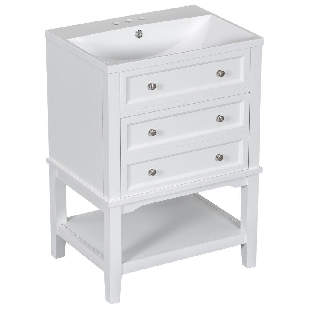 - 24' Bathroom Vanity: This 24' white bathroom vanity is suitable for bathroom in any decoration style. Freestanding white vanity cabinet with silver knobs complies with your bathroom facilities. The groove design on the drawer increases the artistry and aesthetics of the home environment. If you're looking for a simple but stylish bathroom sink vanity, our product will be a great choice to upgrade your bathroom.