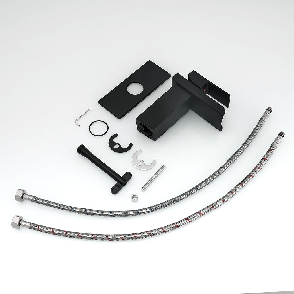 Sink Faucet With Deck Plate Waterfall Black Bathroom faucets