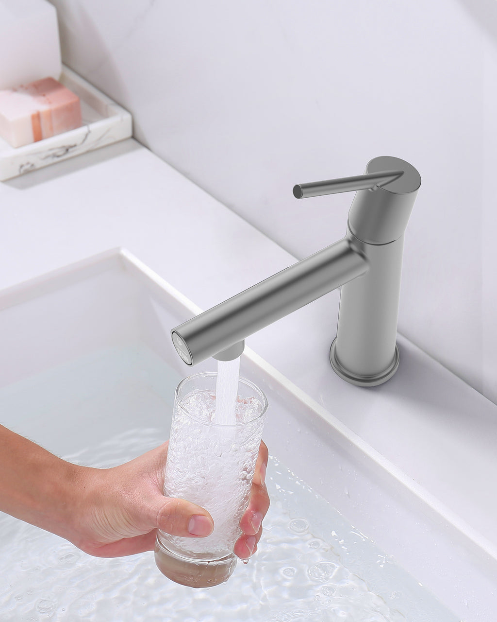 - [Design] Single handle bathroom faucet lever design for easy control of flow and water temperature Soft-touch water flow from the aerator without splashing.Fountain and Flow ModeTwo-in-one function: One-click switch between fountain and flow mode.
