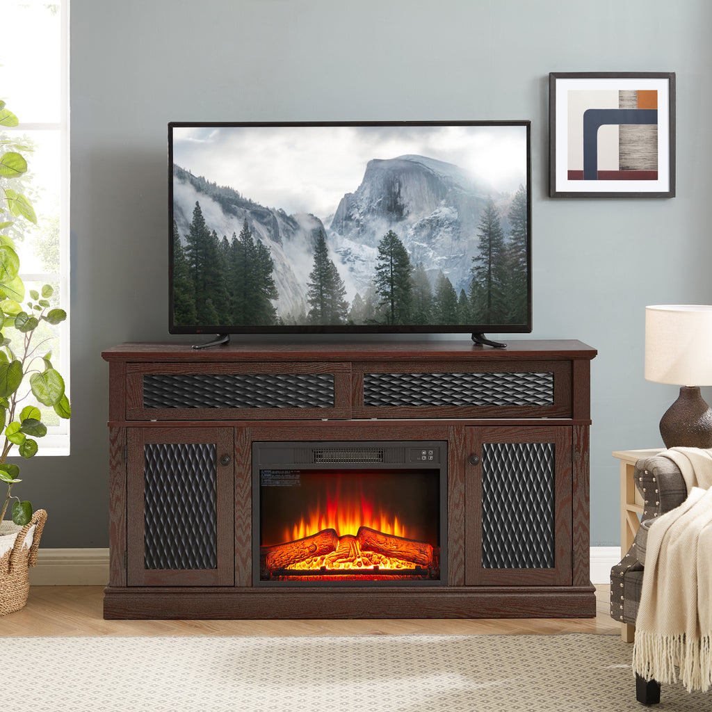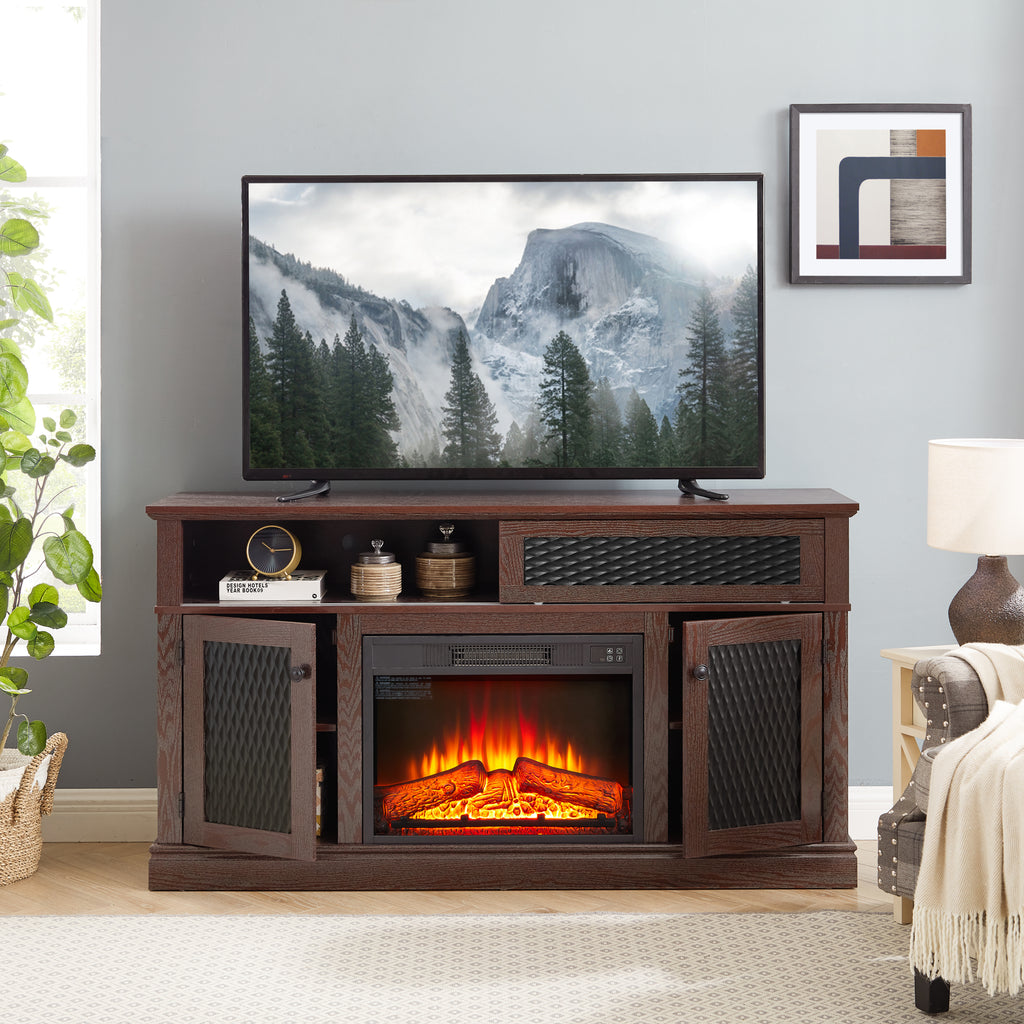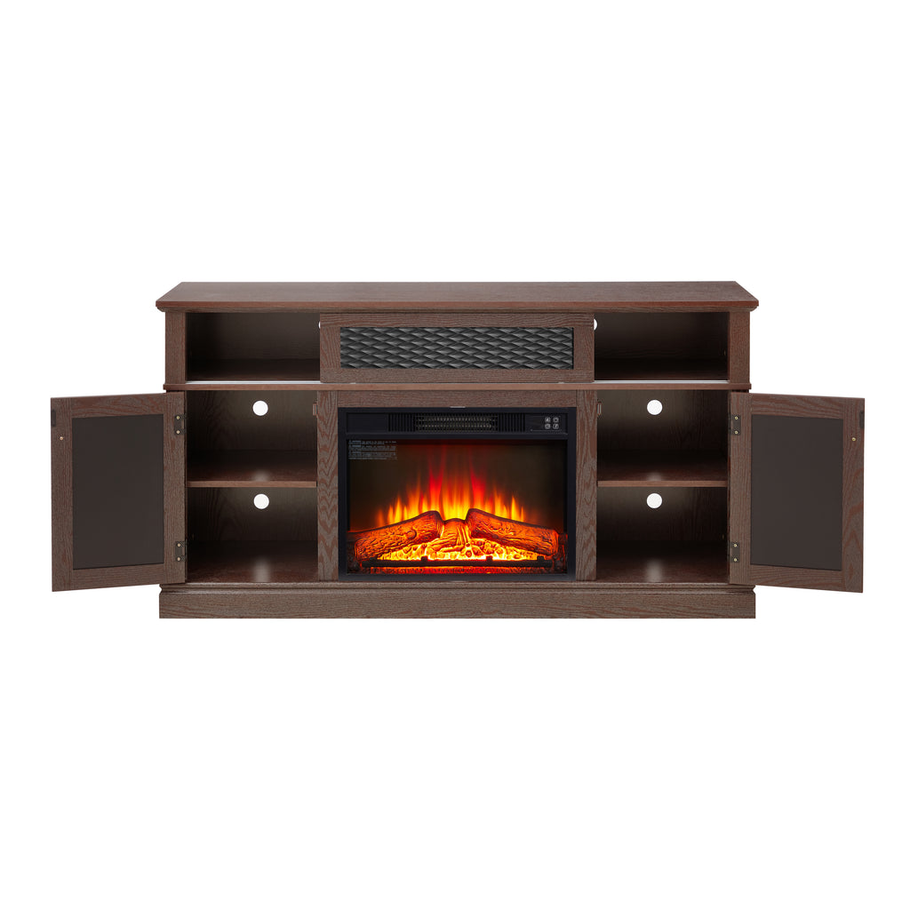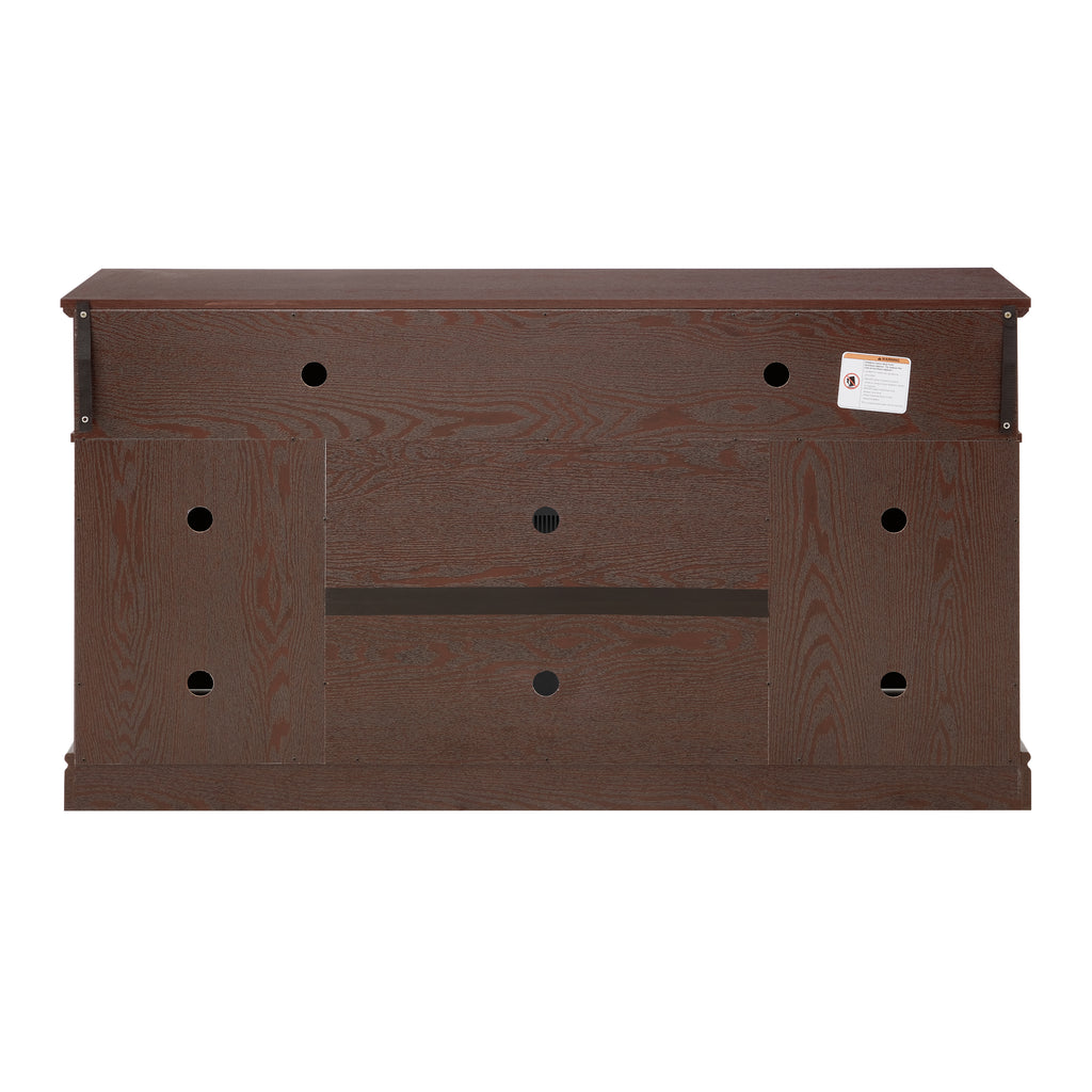 TV Stand Dimensions: 58.27'W*15.35'W*31.7H Largest TV Size: 65'' Body Color: OAK Material: MDF + PB Number of Cable Management Cutouts: 8 Number of Adjustable Shelfs: 3 Fireplace Power Rating: 1,400 W / 4,777 BTU Temperature Setting: 62℉to 82℉ Fireplace Timer Setting: 30 minutes – 6 hours Flame Brightness Levels: 3