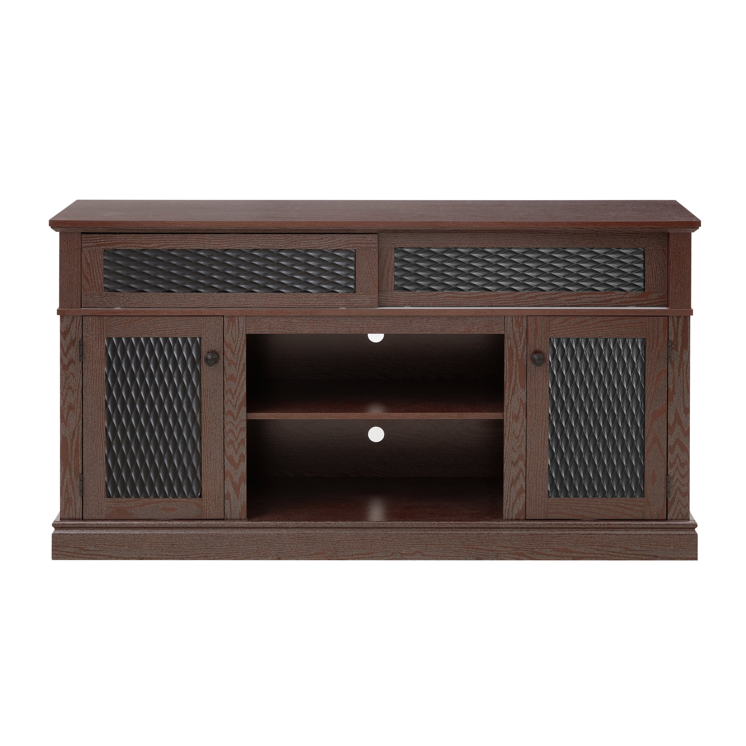 Fits TV up to 65''. Open shelves are great for consoles and gadgets.Embossed pattern making it a perfect fit for any cozy or farmhouse-style decor.