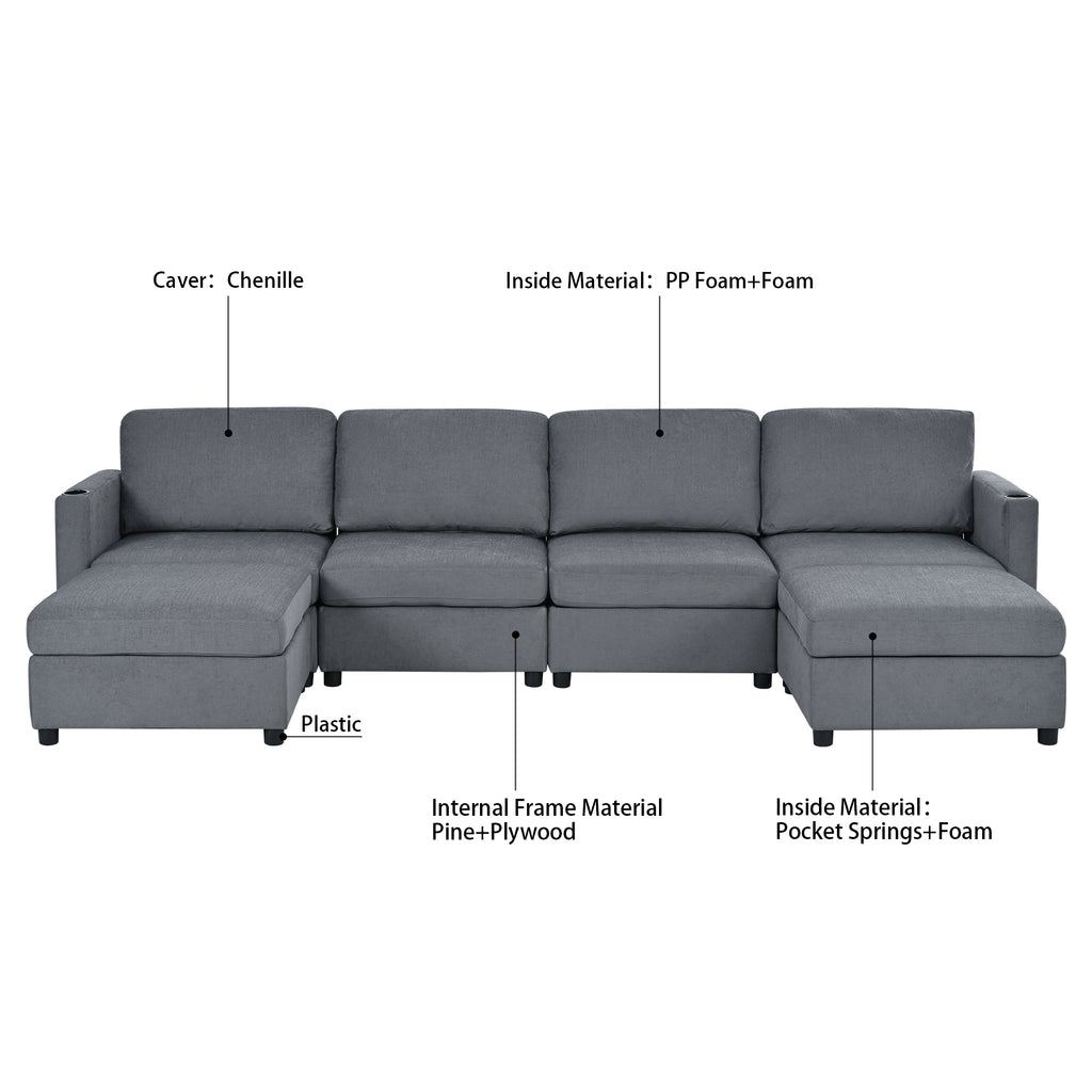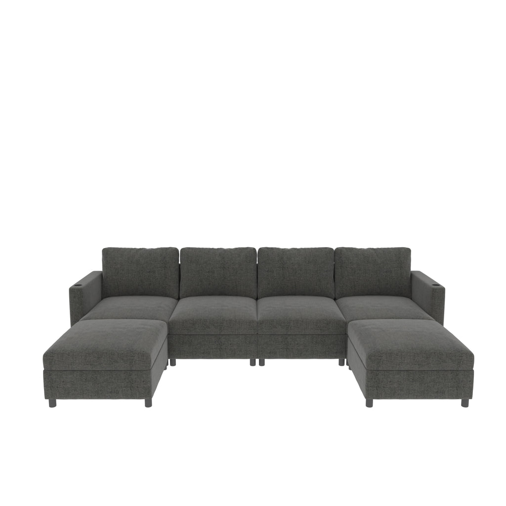 - Flexible Combination: The couch consists of a 4 seat sofa, 2 movable small ottomans.Ottomans can be connected to the 4 seat sofa by connecting pieces to form a U shaped sofa or a sofa bed. Ottomans can also be placed individually according to your needs