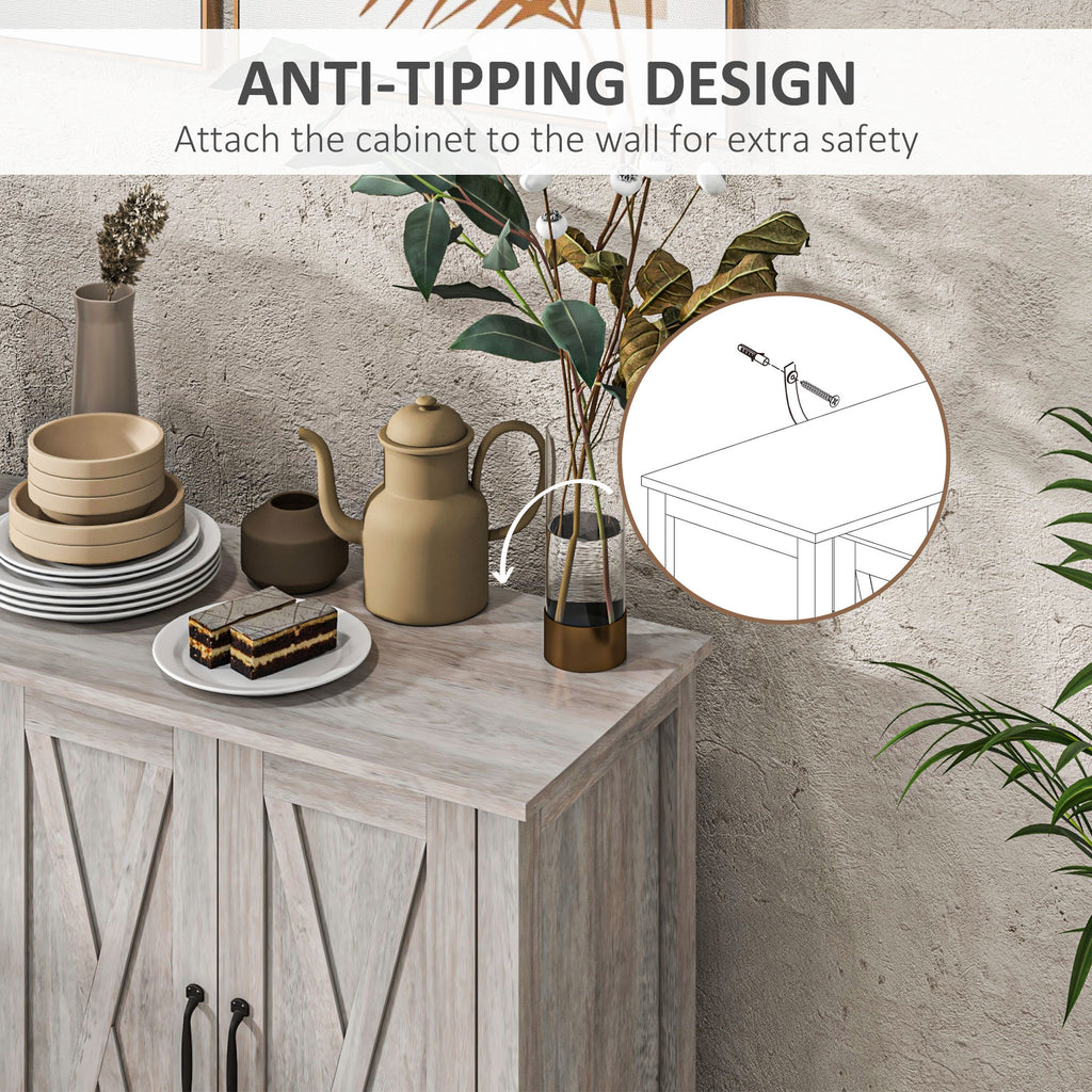 - Farmhouse Charm: Elevate your space with the X-brace barn doors and black accented hardware of our storage buffet cabinet. It adds rustic character, decorating your home with a light touch.