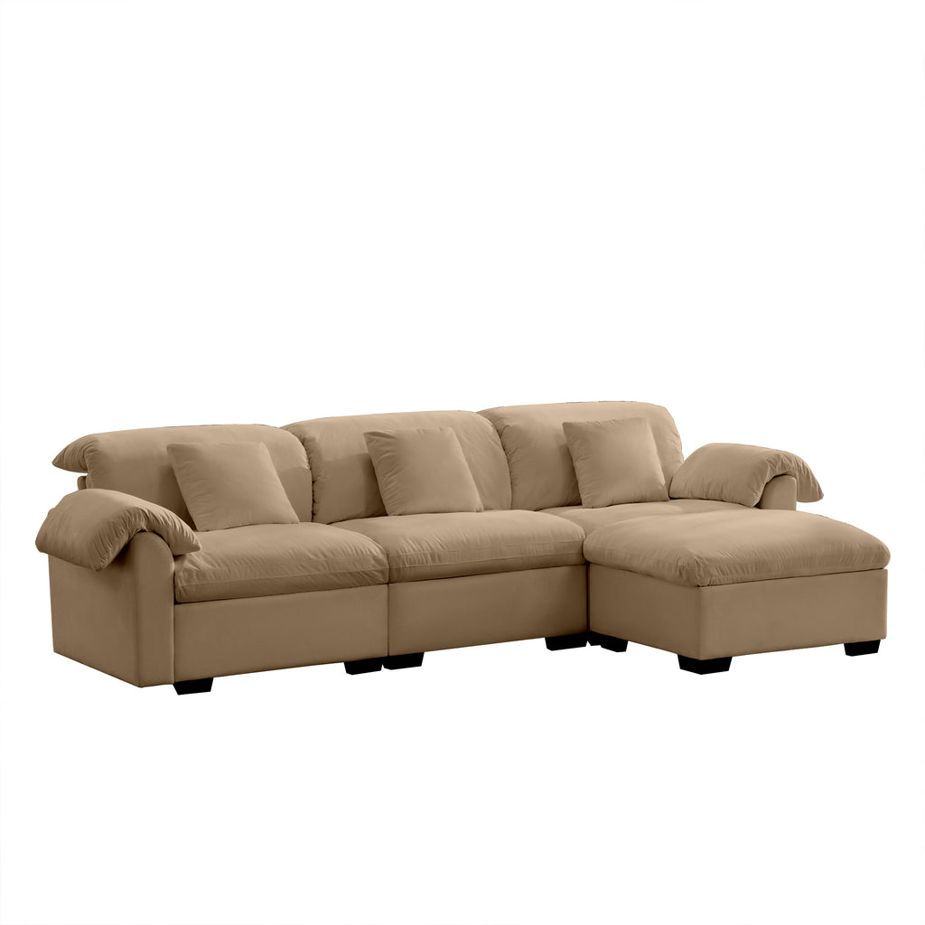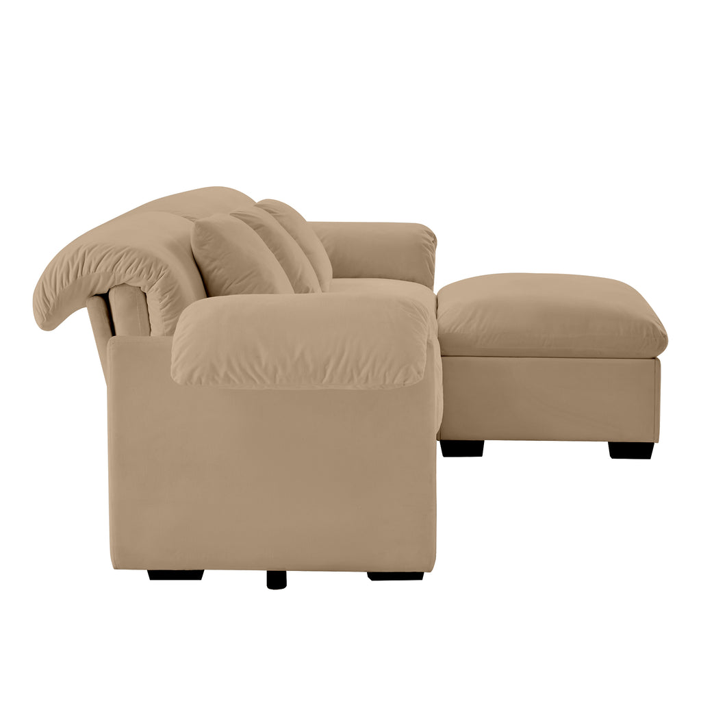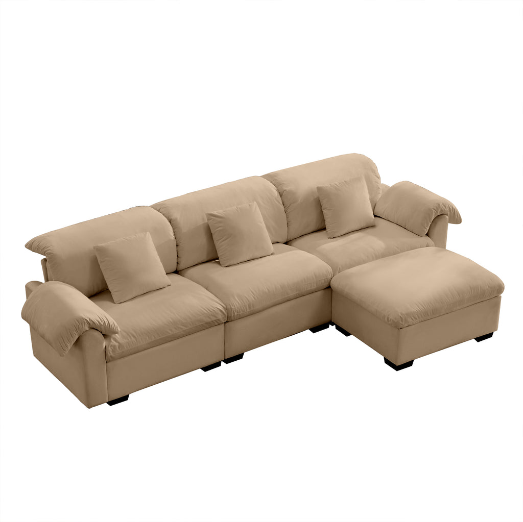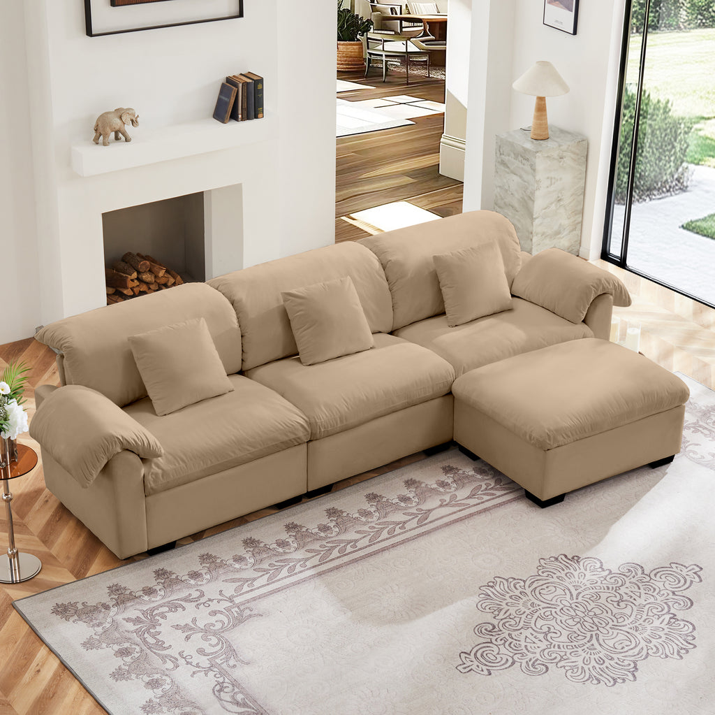 - Unique design - This sofa is made of exquisitely beautiful velvet fabric. Unique armrest and backrest design gives the sofa a modern touch, making your home look refined, cozy, and stylish, while also ensuring high comfort. Looking from different angle , its special arm pillows and back pillows are just like cloud is breezing in the sky. The rich colors of velvet add to its charm, creating a visually stunning effect.