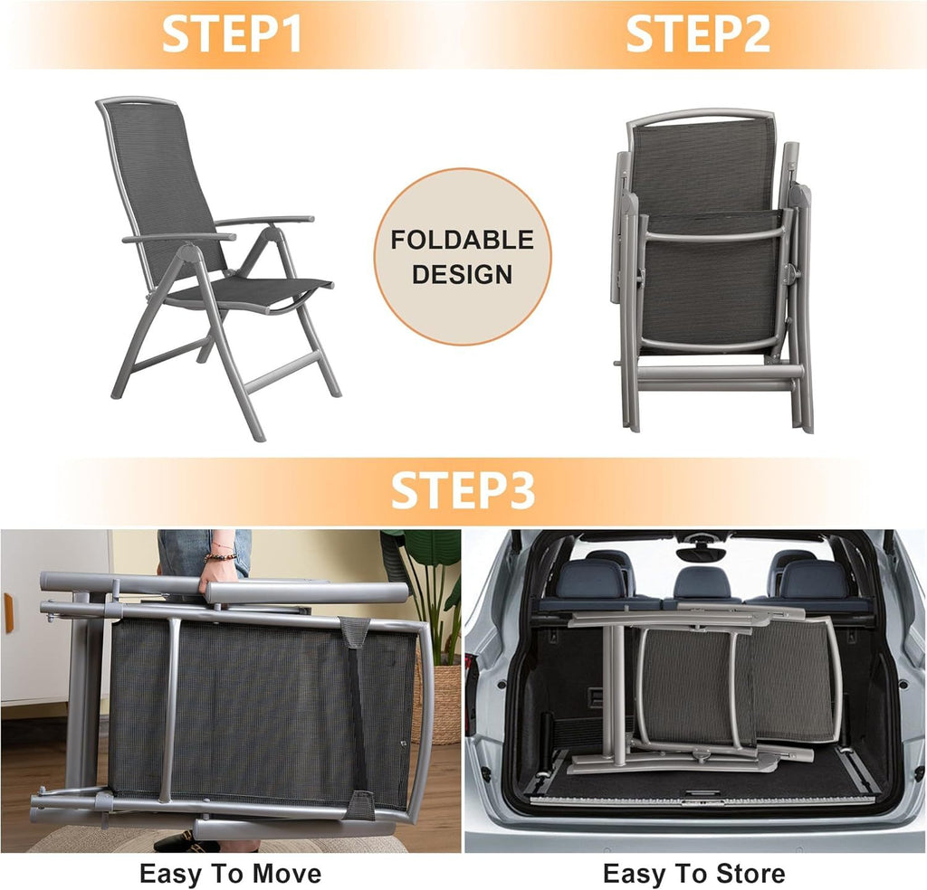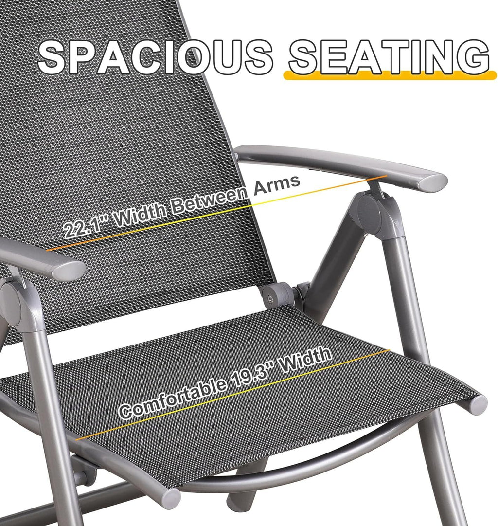 - 145° Adjustable Recline - Customize your comfort with our patio folding chair, offering 7 backrest positions for ultimate relaxation.
