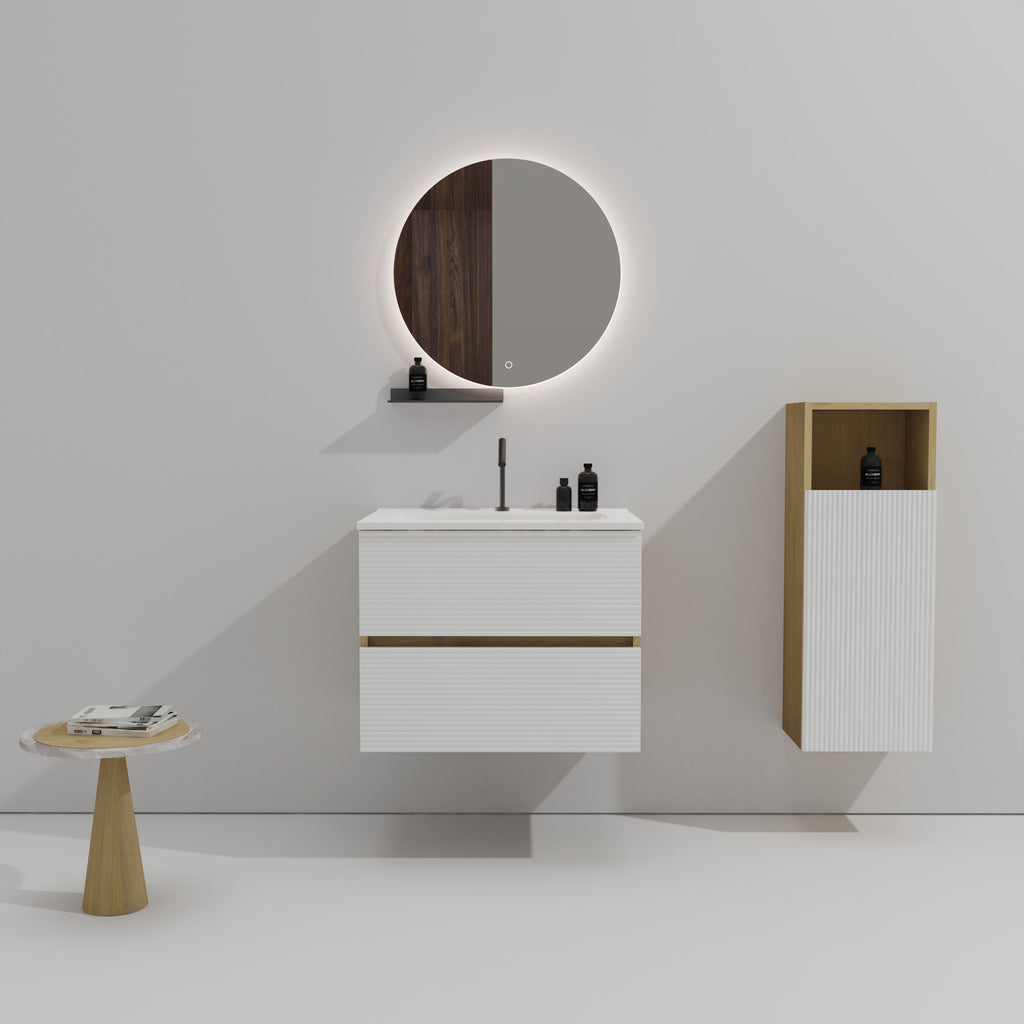Elevate your bathroom aesthetics with the epitome of timeless elegance. This Snow White Matt+Natural Oak modern bathroom vanity seamlessly blends style and functionality to transform your space into a sanctuary of luxury. With its pristine Natural Oak basin and cabinet, it exudes a sense of purity and sophistication. The Natural Oak color palette creates a clean and airy atmosphere, making your bathroom feel bright and inviting.