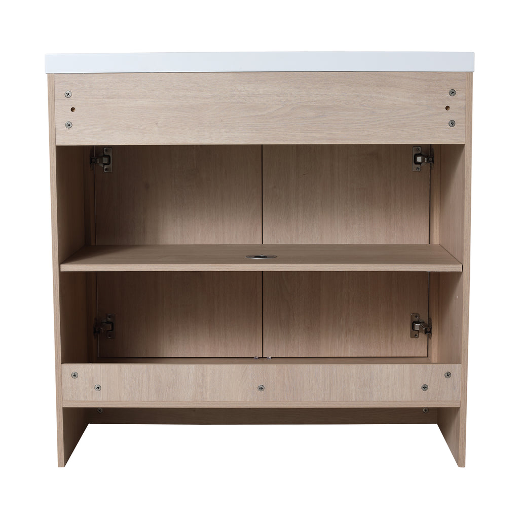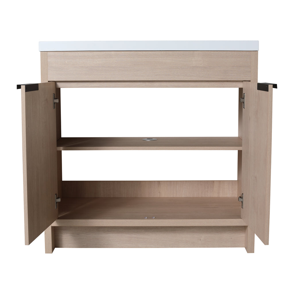 | Package includes | -1x Vanity Cabinet; -1x Resin Sink; -1x Adjustable Shelf; -2x Metal Handle |