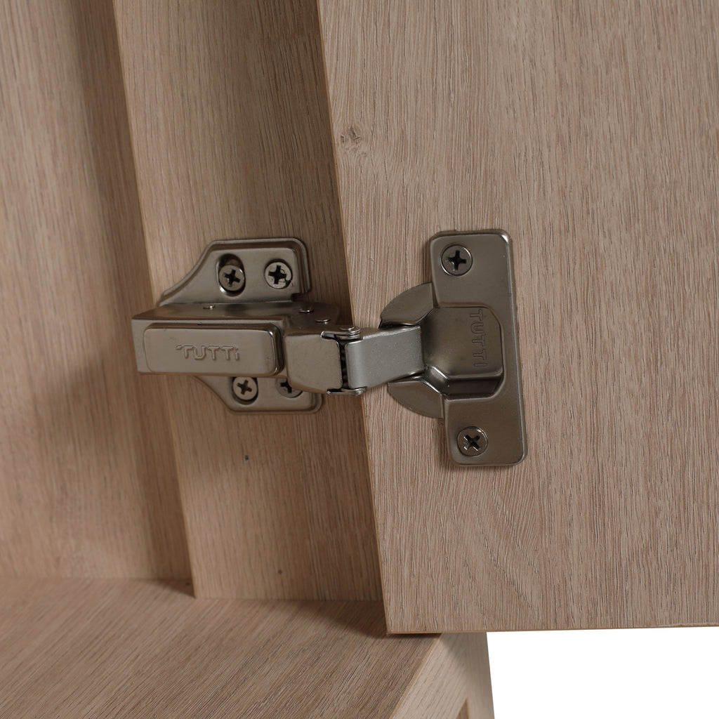 Metal handles and doors with soft-closing hinges can open up and close freely, enjoy quiet and enhance your life pleasure. The material of the door hinges is stainless steel. These materials are extremely water-resistant and suitable for humid environments.