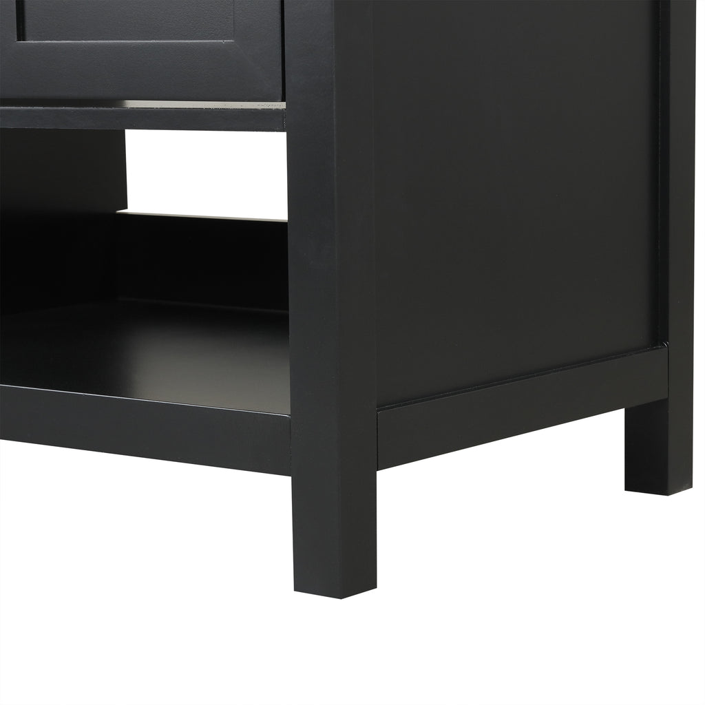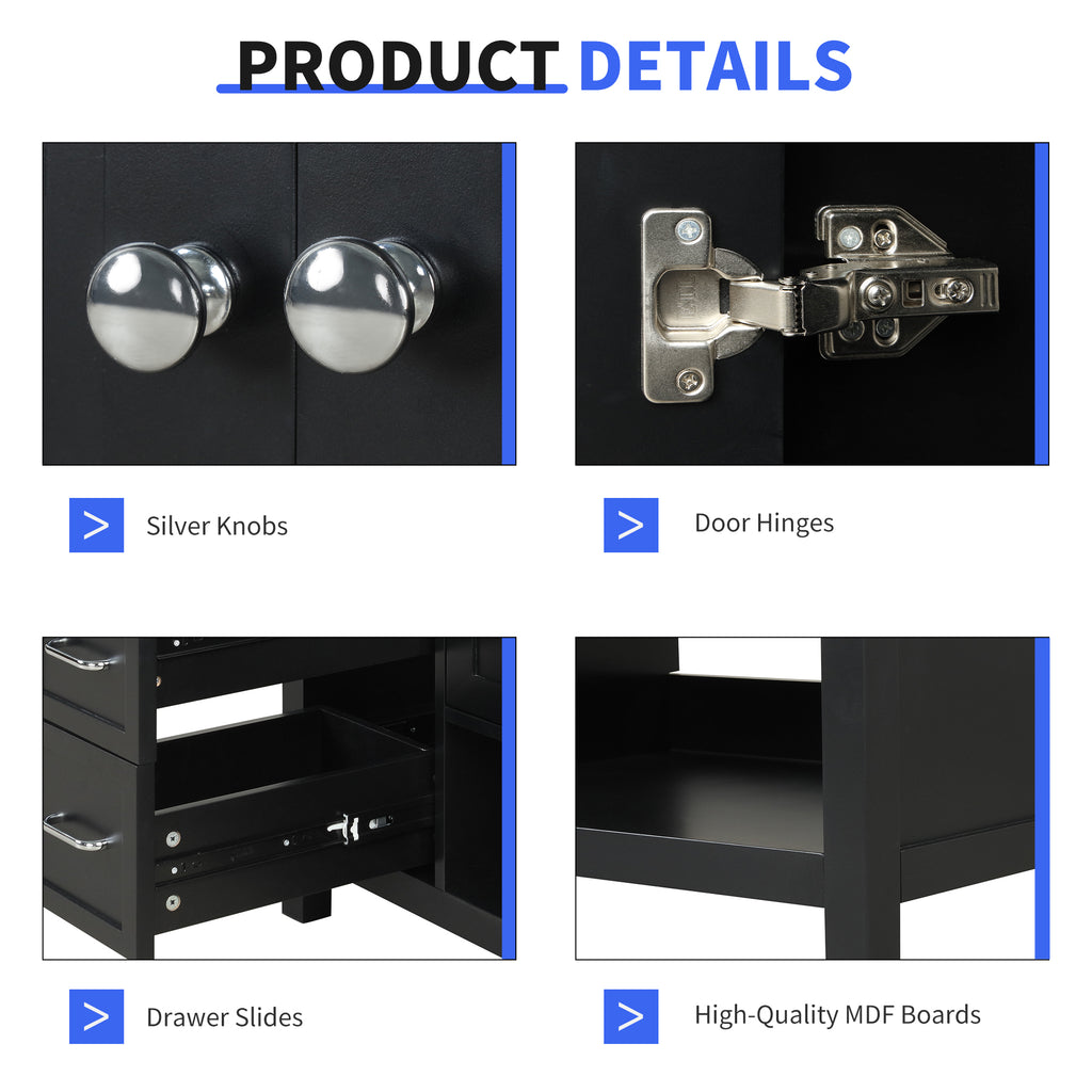 - Vanity with Cabinet & Drawers: Considering the humid environment in bathroom, this bathroom vanity has ample enclosed storage spaces: one cabinet with two doors and two drawers with slide rails. You can put soaps, towels, shampoos, tissue paper and other bathroom essentials in it so to keep them away from dust.
