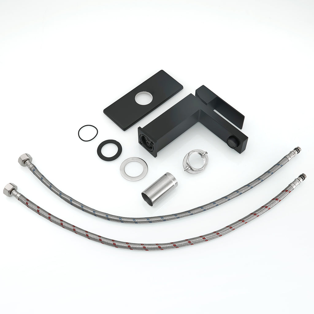 Sink Faucet With Deck Plate Waterfall Black with Pop Up Drain and Supply Lines Bathroom faucets