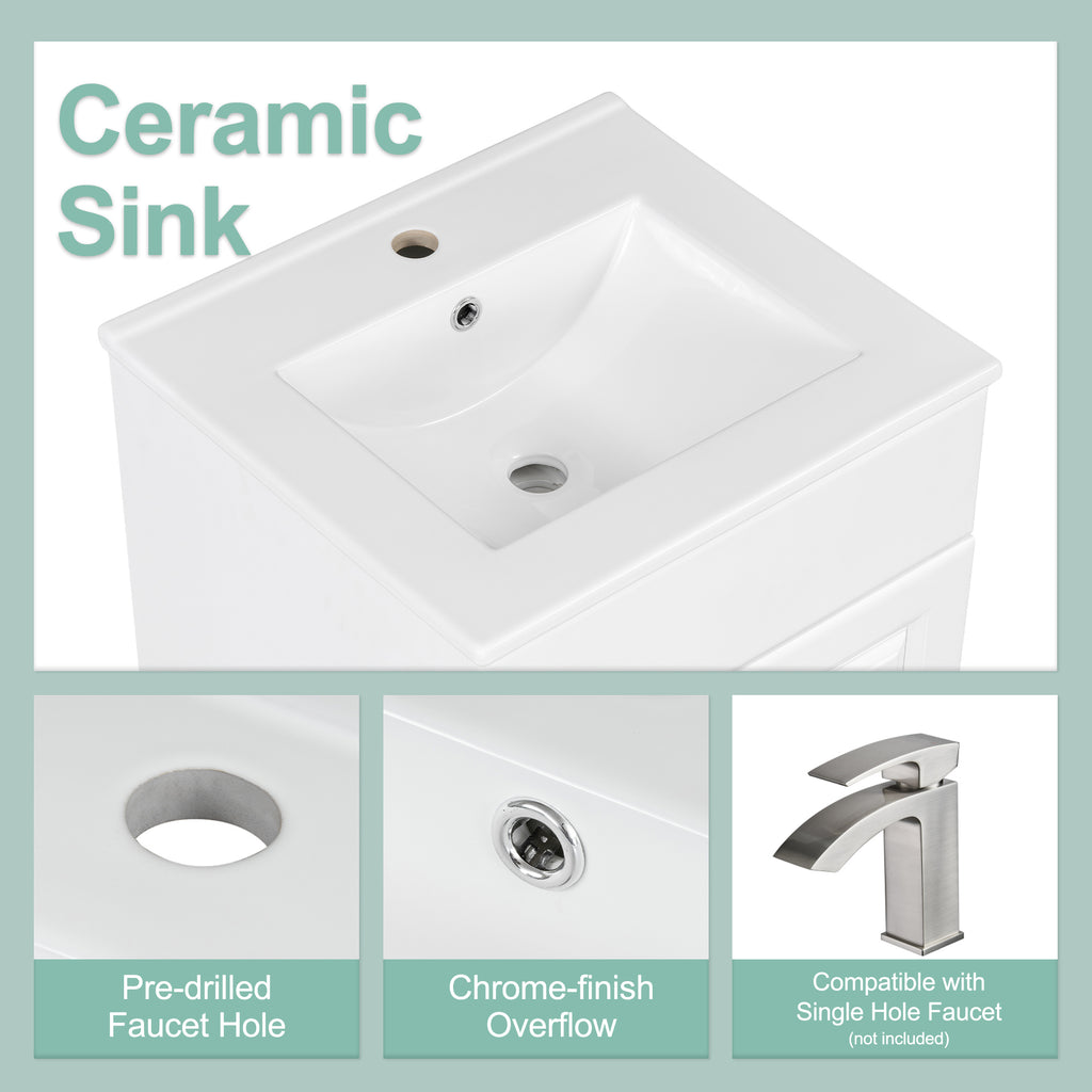 - Ceramic Sink: Our bathroom basin sink is made of solid ceramic with smooth and water-proof finish, which hardly leaves water stains. The pre-drilled hole on the top is available to single hole faucet (not included). Besides, the overflow with metal circle is in case of water spilling over when you forgot to turn off the tap.