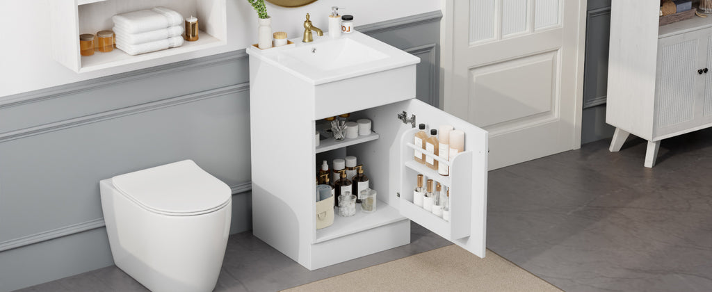 - Assembly Required: This bathroom vanity cabinet and sink, needs full assembly, is in one package. All the hardware and instruction manual are provided