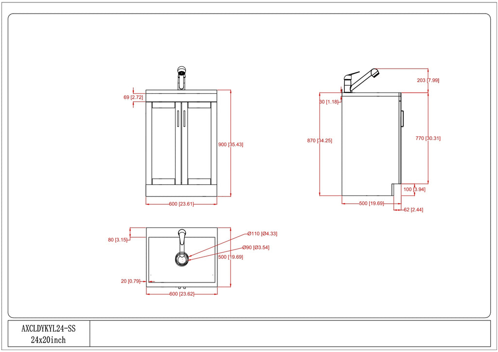 - DIMENSIONS: 23.6' W x 35.4' H x 19.7' D Sink Depth: 10 inches