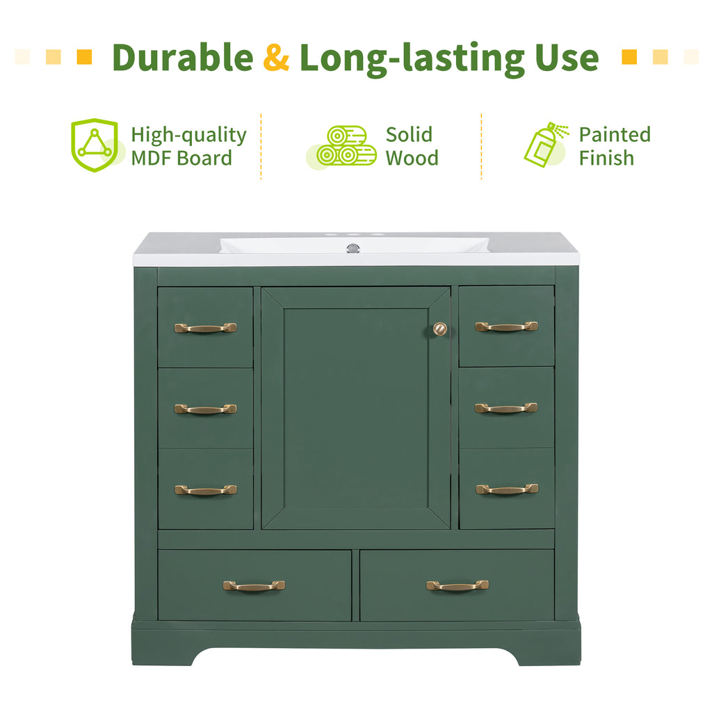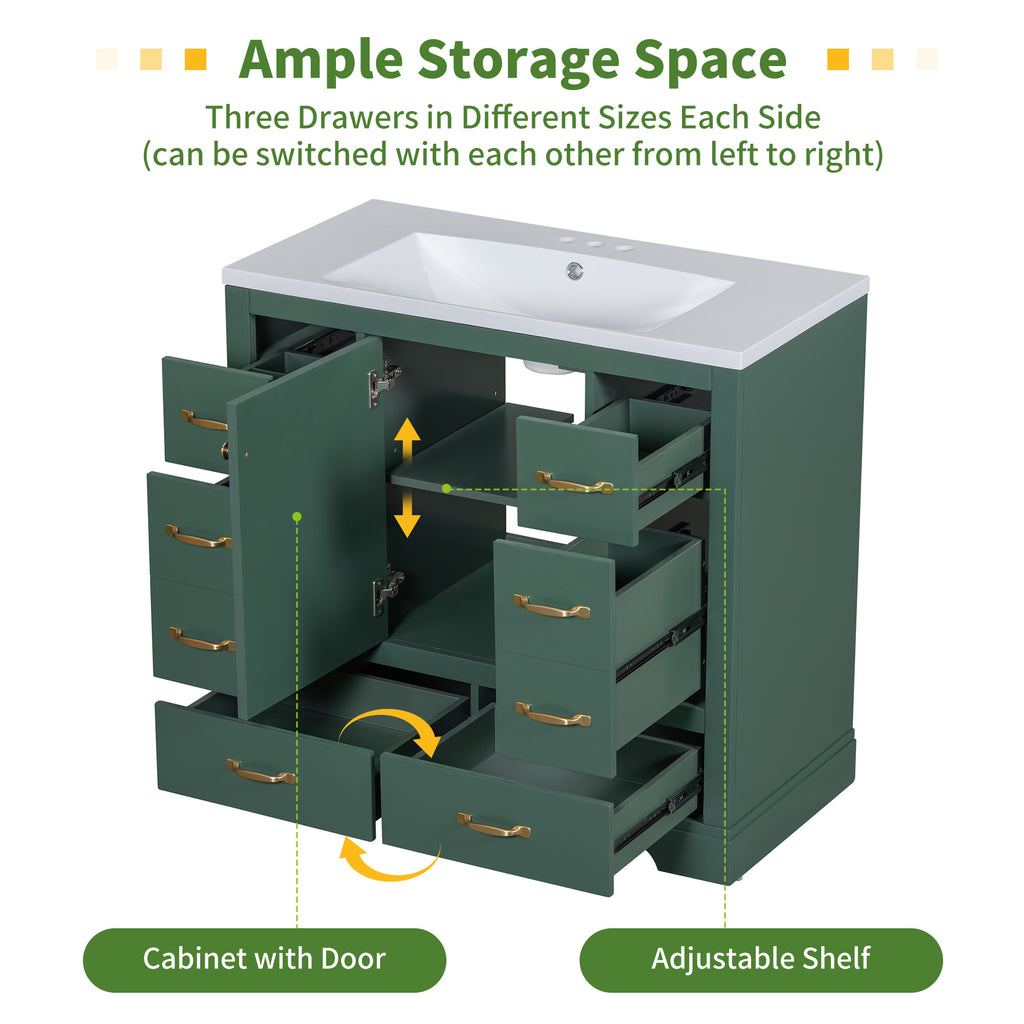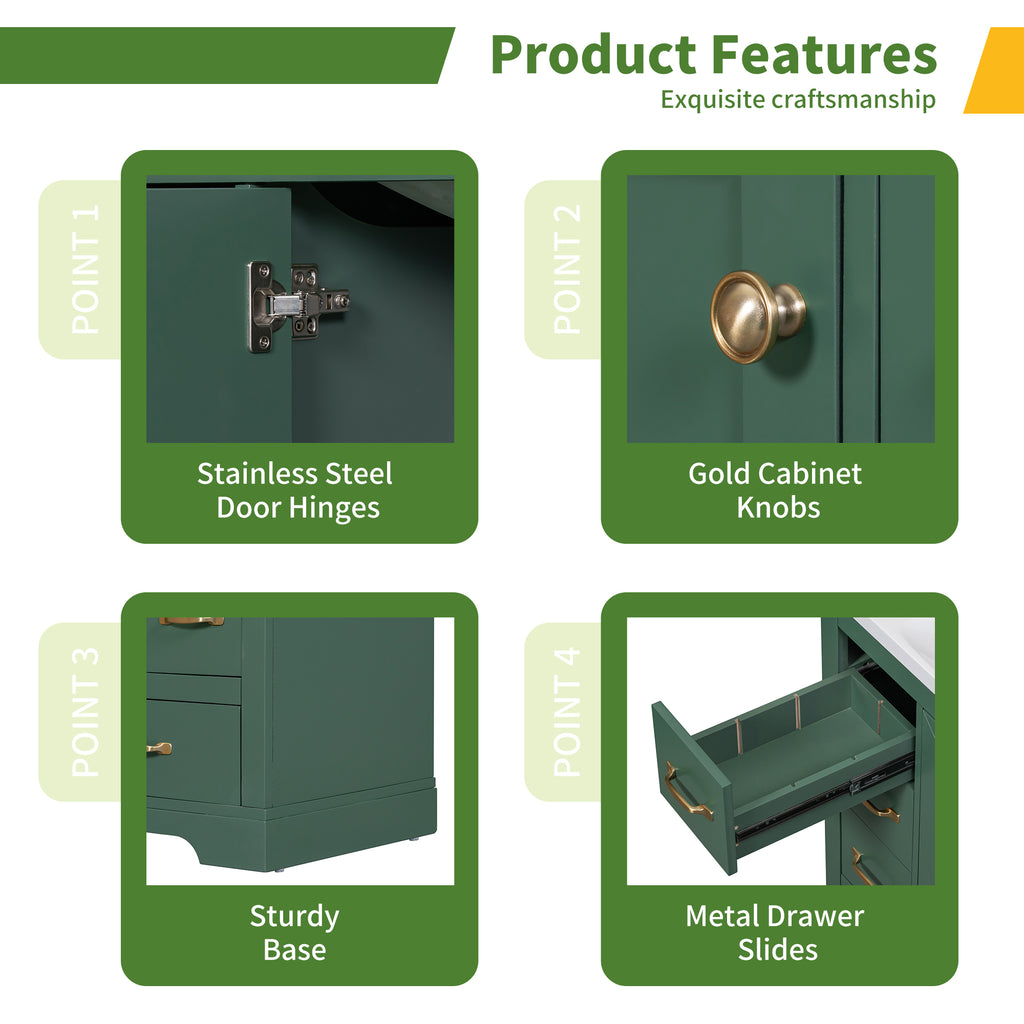 - Bathroom Cabinet Base Only: This product is just a cabinet base and not included sink. One center location sink will fit this product, so you can buy the sink top you like from anywhere else. Clear green furniture is available to different bathroom sink and will definitely add more elegant element to your decoration.
