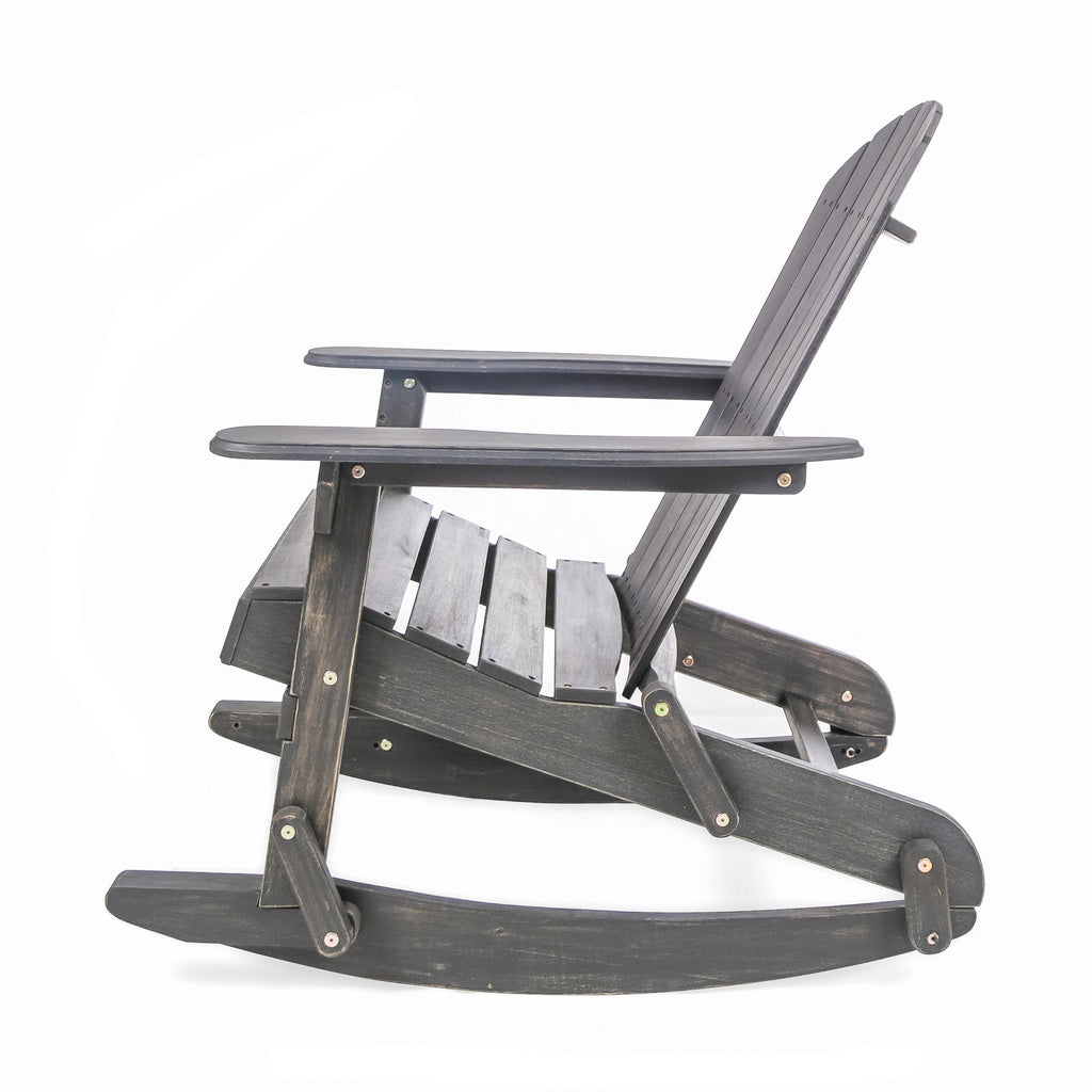 - Includes: one (1) rocking Chair. Material: Acacia wood. Finish: Dark Grey