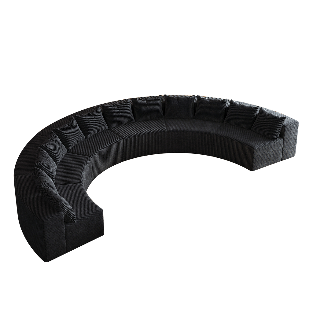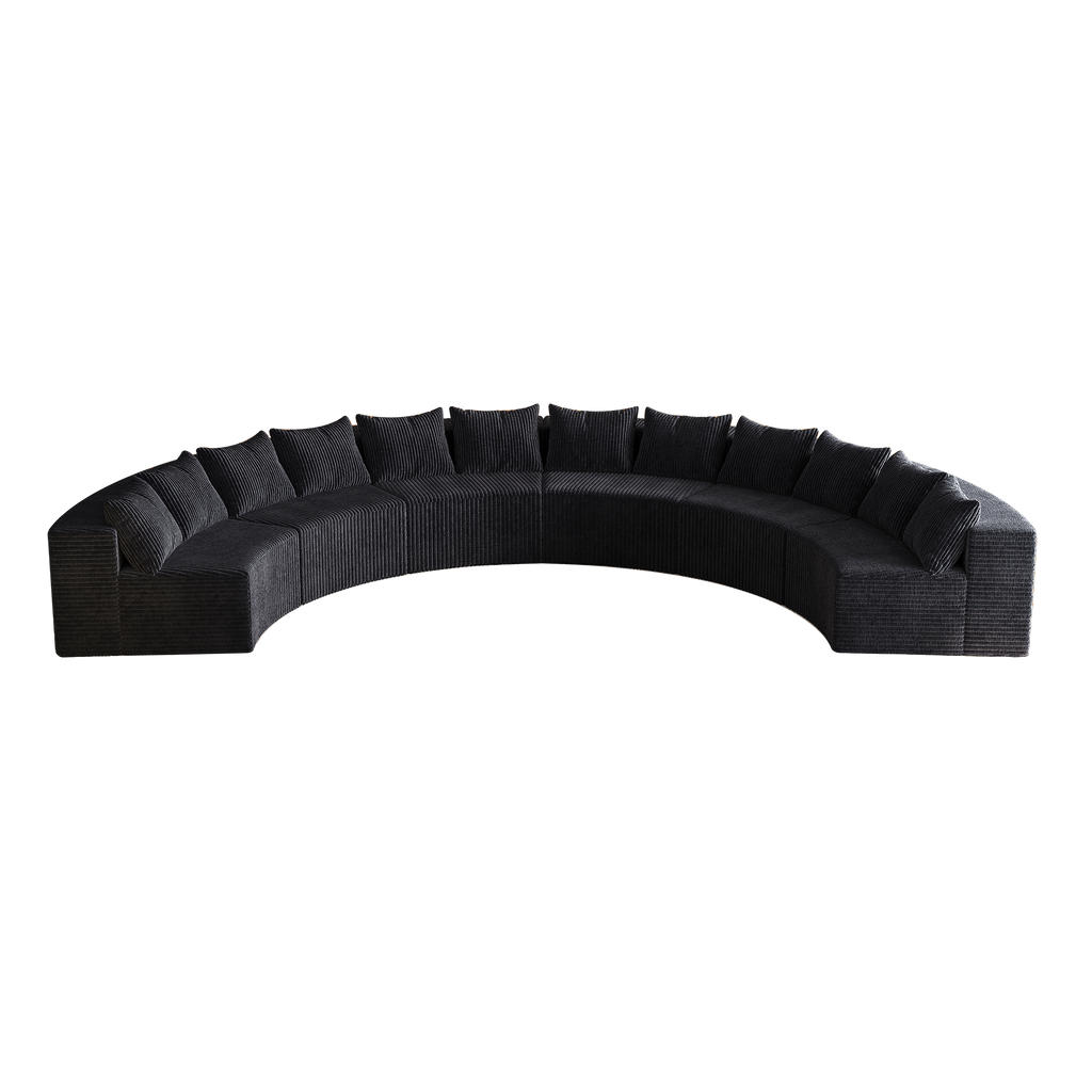 - 【UNIQUE DESIGN】 The curved sofa's unique shape instantly fills your room with a cozy ambiance, featuring beautifully detailed the curves of the armrests, Corduroy fabric, for an elegant look. This comfy couch also comes with 4 pillows for comfortable back support.