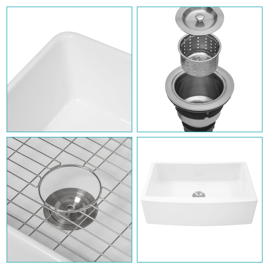- What's in the Package --Include a 33 inch farmhouse kitchen sink, 304 stainless steel dish grid, basket strainer.