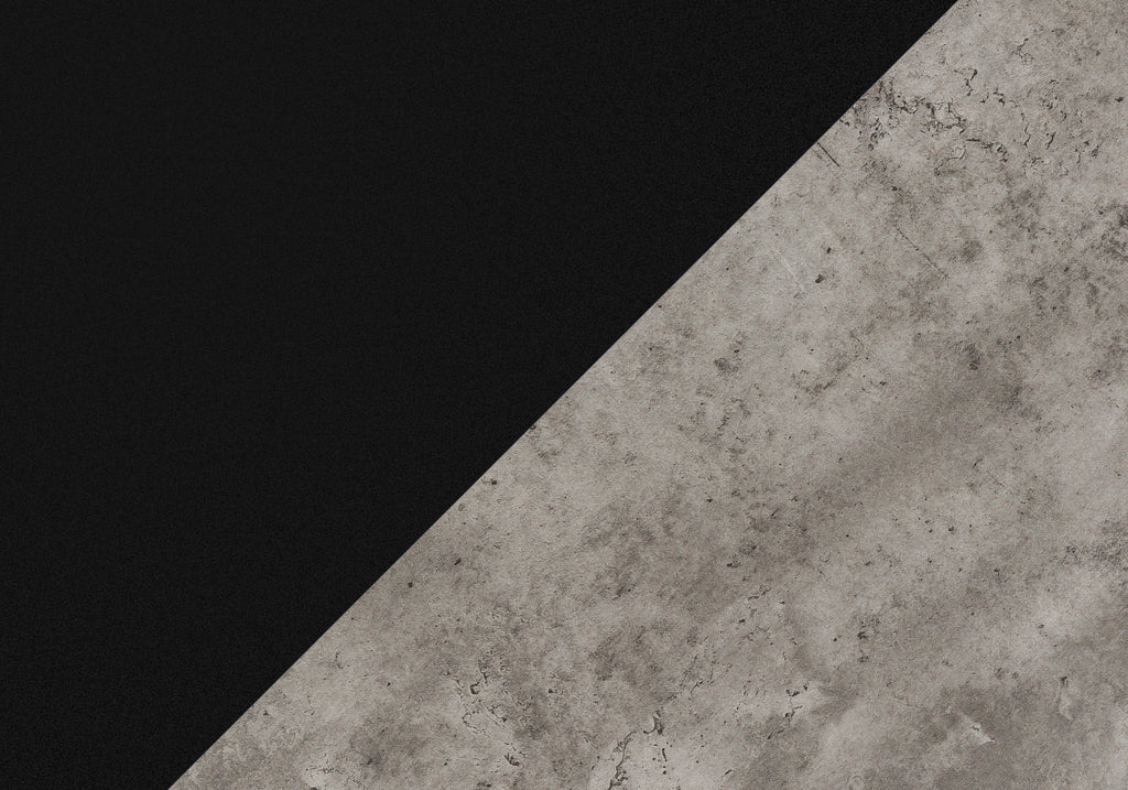 - Finished on all sides in a sleek black and grey concrete laminate, with a durably designed supporting black metal base in a modern u shape for stability with a fashionable style.