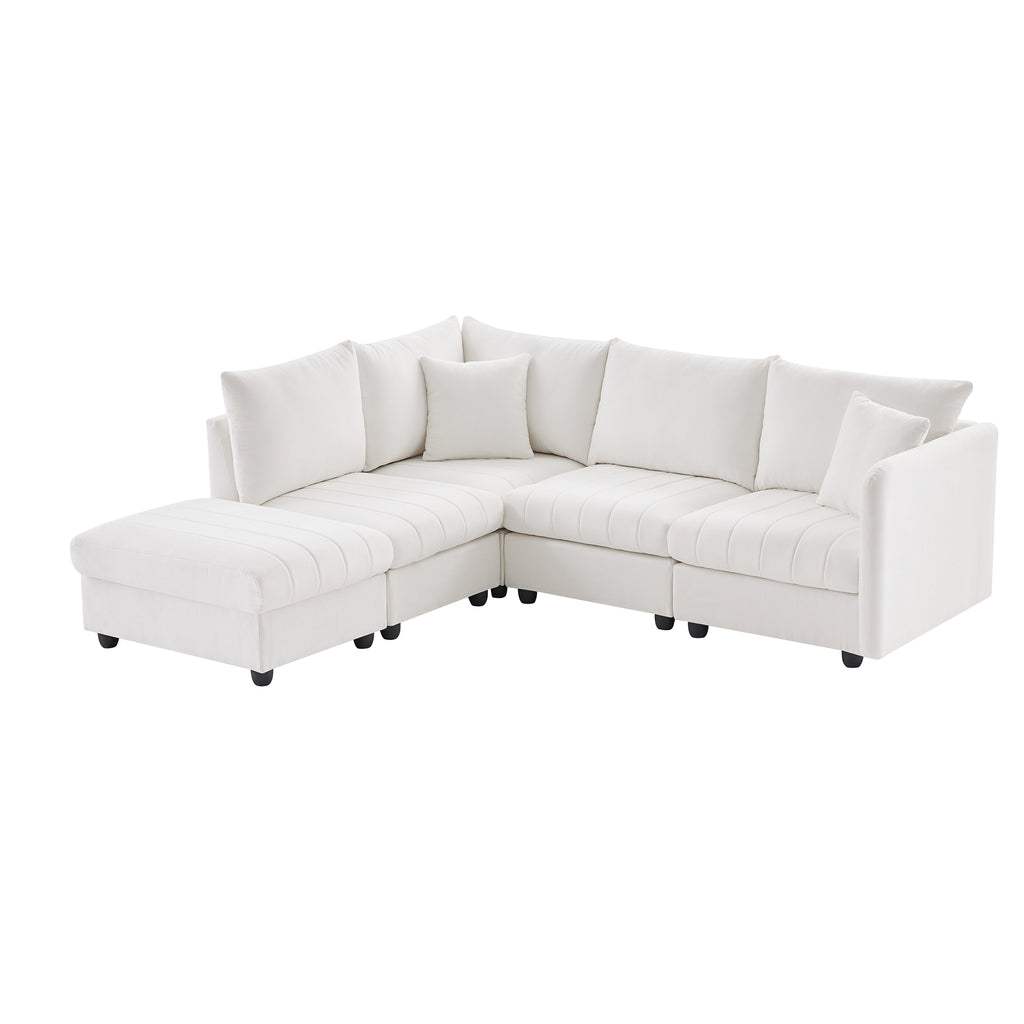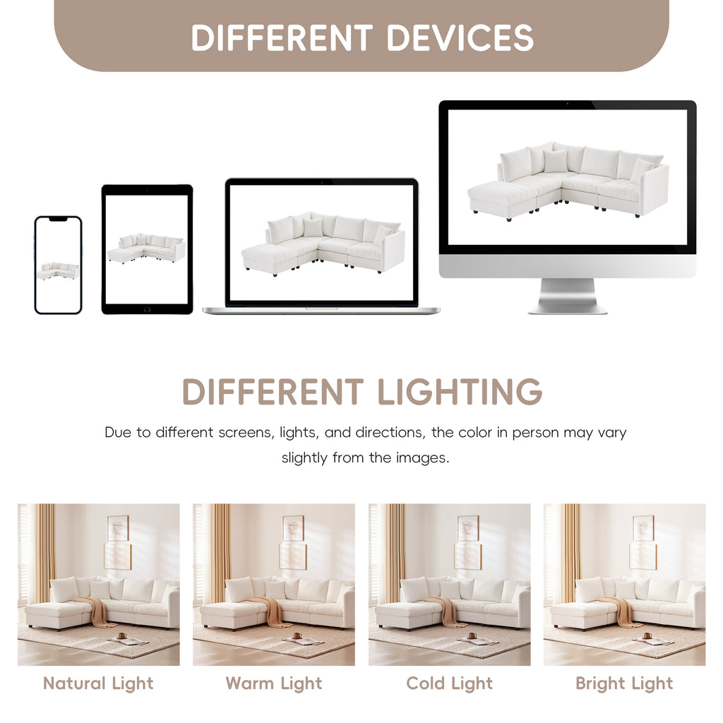 If you're looking for a stylish and versatile addition to your living space, this L-shaped sofa with a movable ottoman is the perfect choice. The ottoman can be easily repositioned, giving you the flexibility to adjust your seating arrangement for maximum comfort. The cushions feature a trendy vertical stripe design, adding a modern and sophisticated touch to your home decor. Whether you're lounging, entertaining guests, or simply relaxing, this sofa offers both functionality and style, making it an excellent choice for any living room.