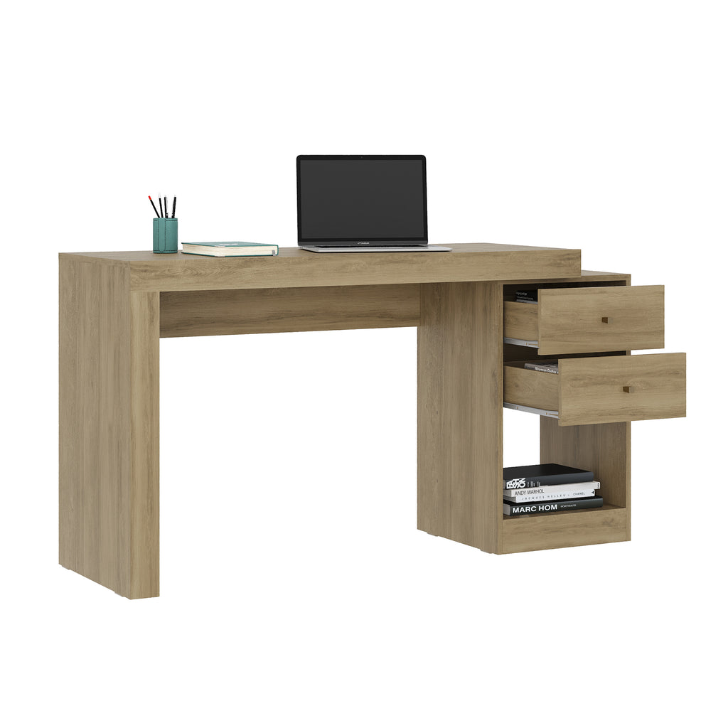 The Techni Mobili Expandable Home Office Desk is made of heavy-duty engineered wood, and available in 3 colors: Pine, Walnut and White finish. This item is sold separately or as part of the Cassa Collection Set. It includes two storage drawers and one open-back bottom shelf to store your office supplies, small printer, books or any other working essentials. It features an expandable desktop to cover larger spaces while keeping your home-office organized. With its sleek appearance and modern design, it will make your room more attractive and sophisticated.