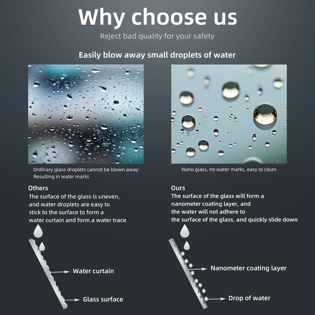 - SGCC 1/4' tempered clear glass with Nano eacy clean treatment and anti-explode film, cleaning become easy. and safe.