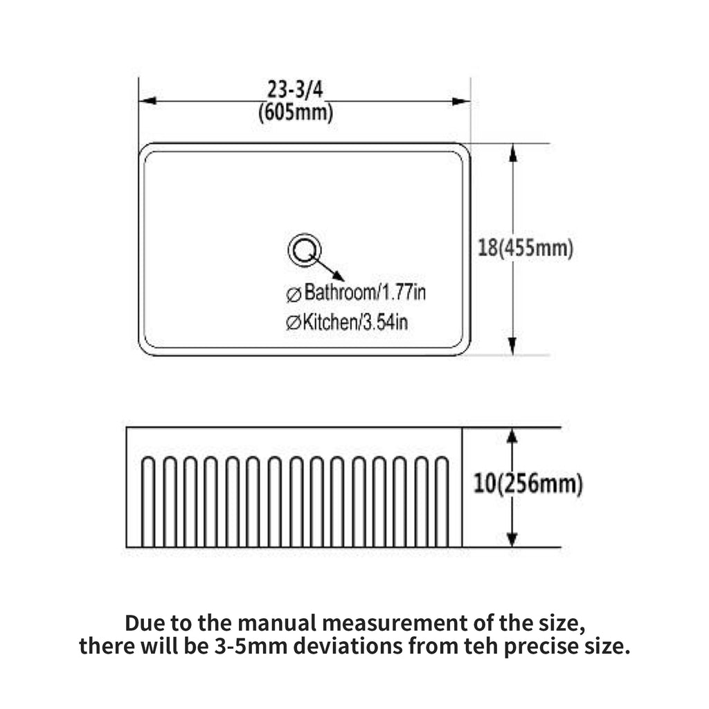 This 24' kitchen sink is a durable addition to any home. The material's resistance to heat and scratches makes it perfect for a frequently used kitchen. Our products are inspired by vintage farmhouse sinks that create a distinctive clean look. It will not rust, fade, or discolor, providing beauty and durability.