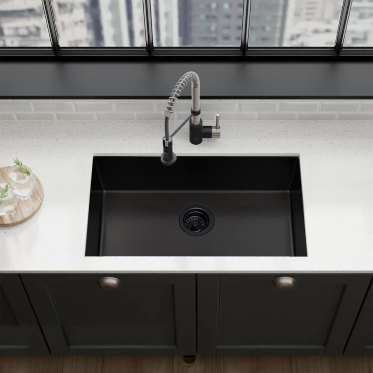 - Modern gunmetal black undermount single bowl kitchen sink, premium T304 grade thick stainless steel nano surface kitchen sink, 30% thicker than most standard kitchen sinks, superior strength and durability