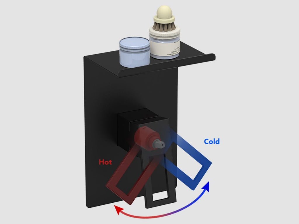 - ●Single-function simple black shower faucet set, the water valve controller is equipped with a storage rack, which can store facial cleanser, soap, toothpaste and other items.