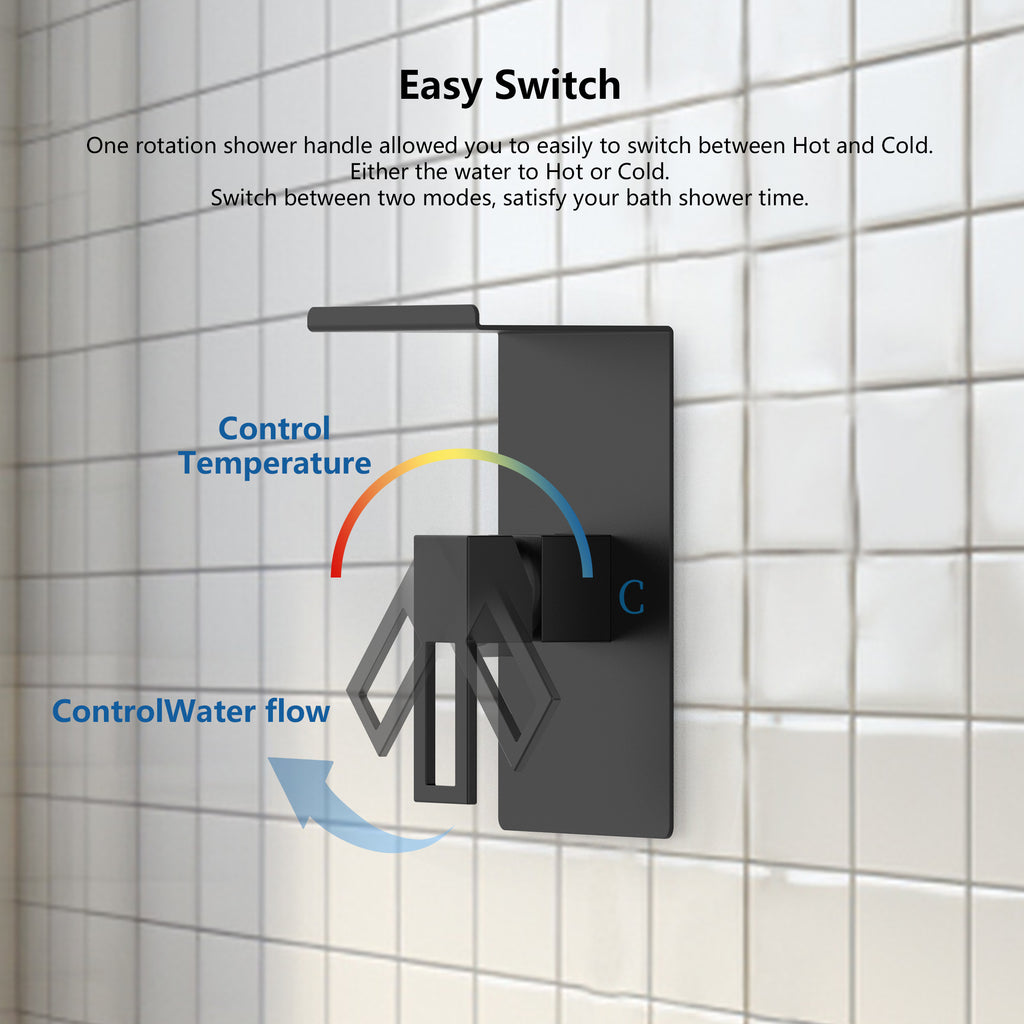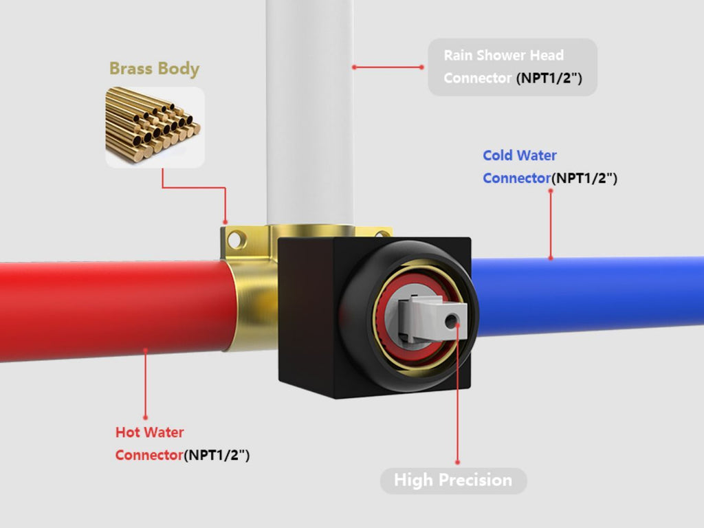 - ●Excellent durability: The shower head and water valve controller are made of brass and 304 stainless steel material structure, and the matte black rainshower head finish is durable and will not corrode or tarnish.