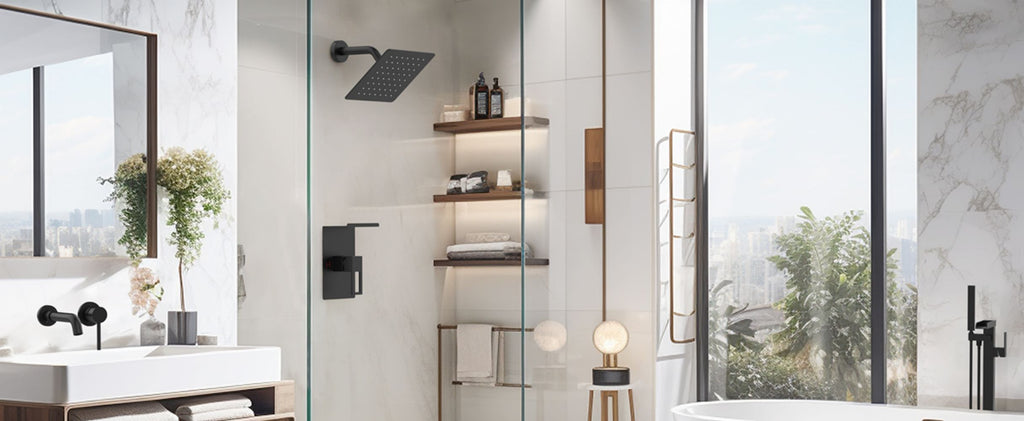 - ●Exquisite and practical design: The 8-inch square shower head adopts a modern and simple design, and the storage rack design improves practicality without unnecessary elements.