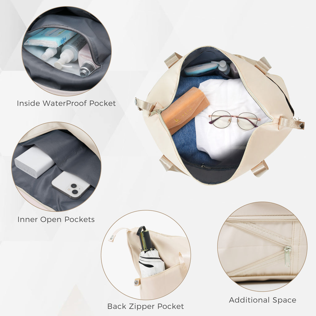 - 【Expandable weekender travel bag】 Made of polyester fabric, the bags are mild water-repellent with multiple pockets for organization.