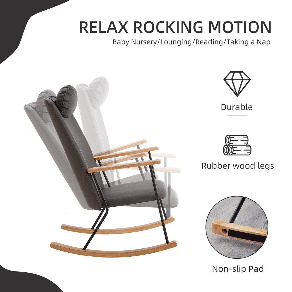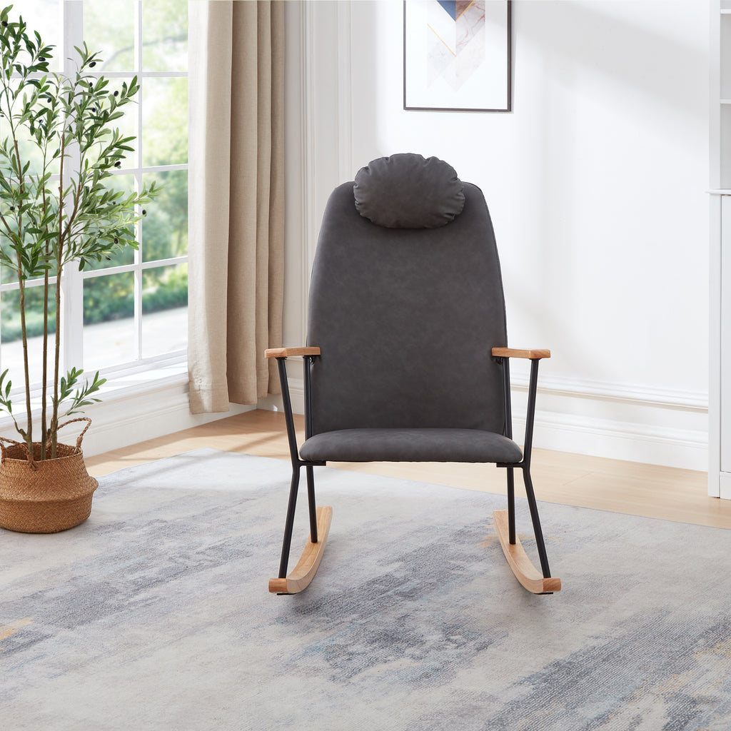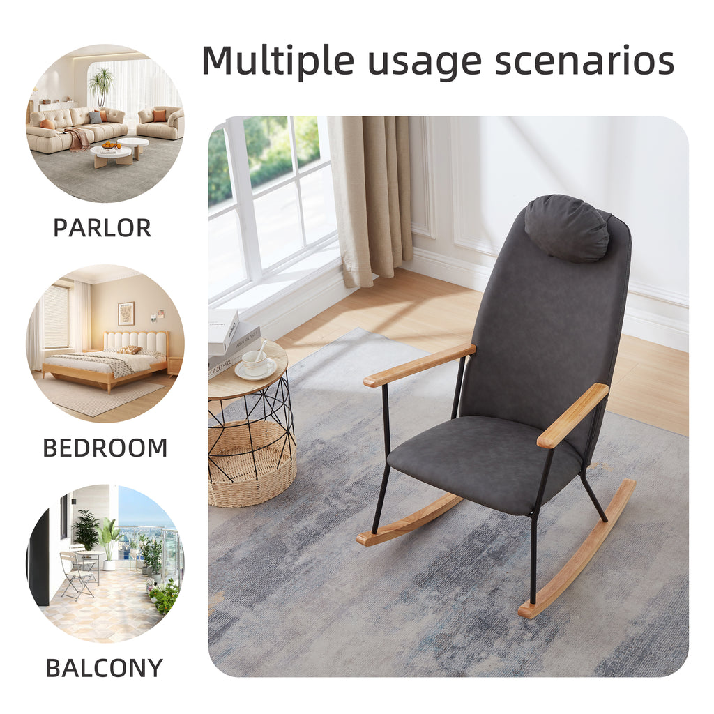 - 【SOFT AND THICK SEAT】The high back and thick seat cushion are filled with sponge, ensuring a soft, comfortable, and elastic feel that is resistant to collapsing. The high backrest also comes with a head pillow, which can be adjusted to the front or back.The entire recreational rocking chair is plush enough for you to fully enjoy and relax your body after a long day at work.