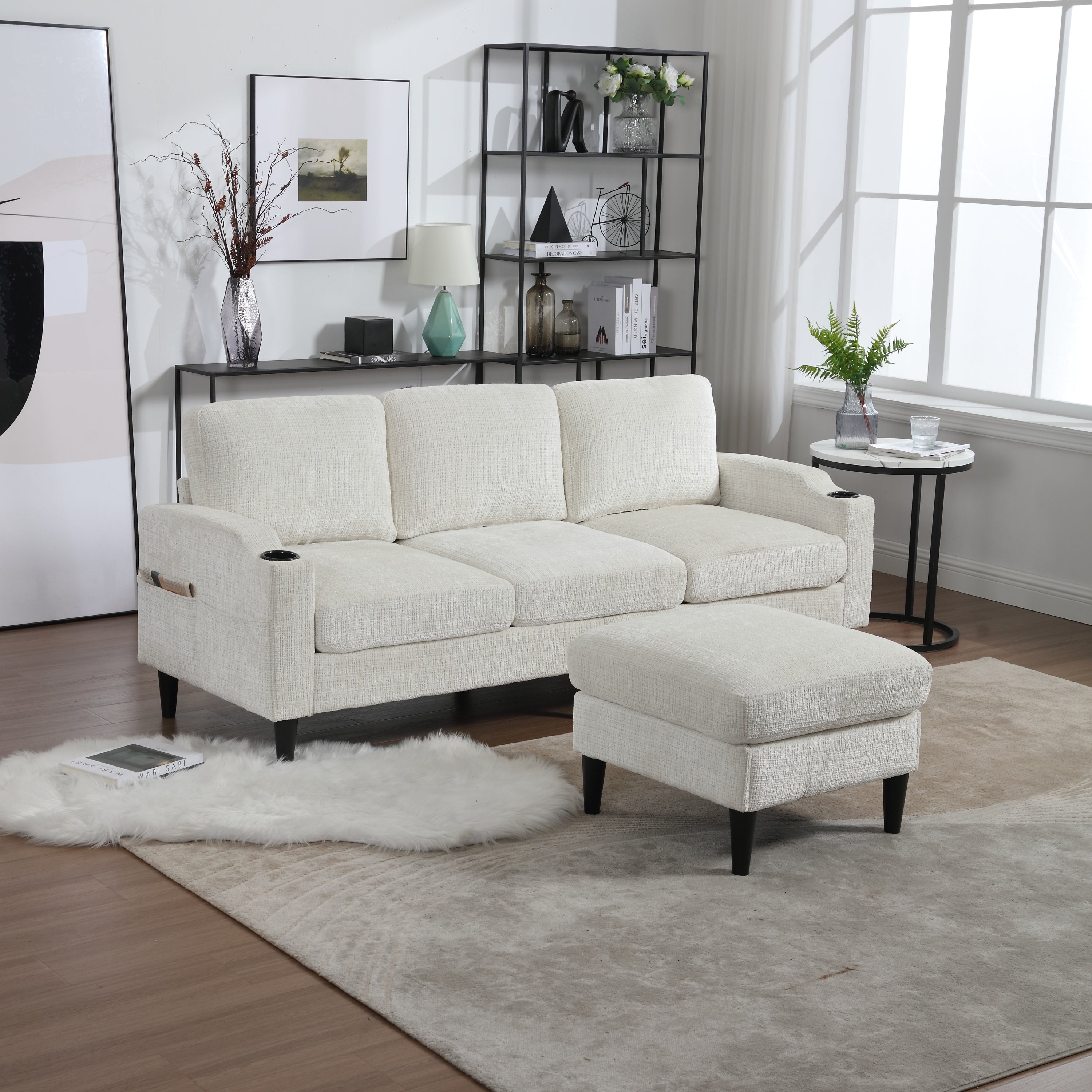 - Free-Combined Sectional Sofa 3-Seater Modular Couches with Storage Ottoman