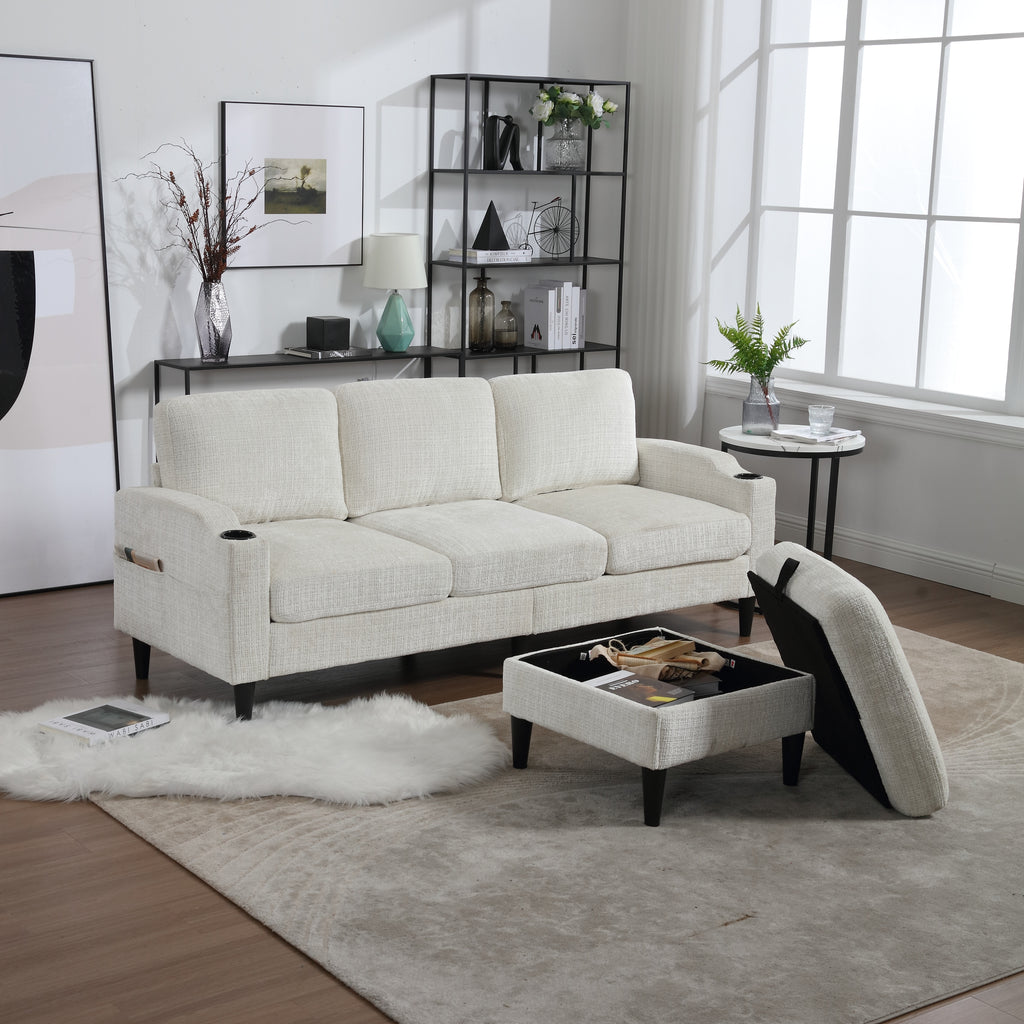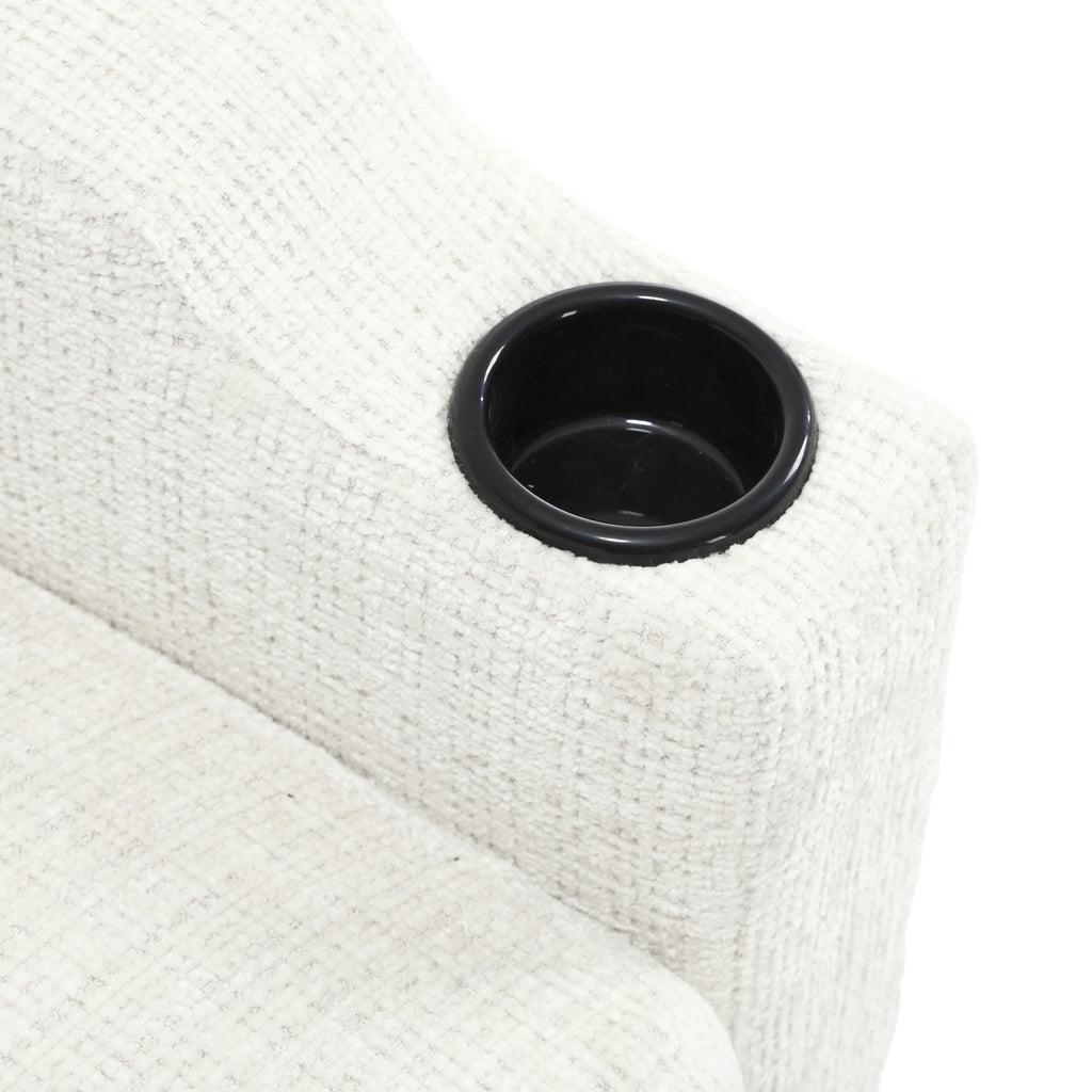 1.Storage Ottoman-Store extra blankets, pillows, or other items in the ottoman's spacious compartment 2.Both armrests contain cup holders, with pockets on the side
