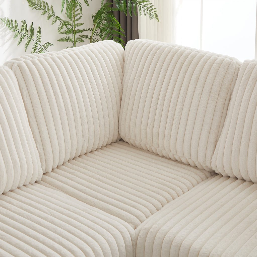 - 【Soft Corduroy Upholstered Modular Sectional Sofa】High-quality corduroy of the back and seat cushions can also avoid slipping when seated. which has a soft texture and gives you a relaxing feeling. It's easy to care for and won't wrinkle or fade.